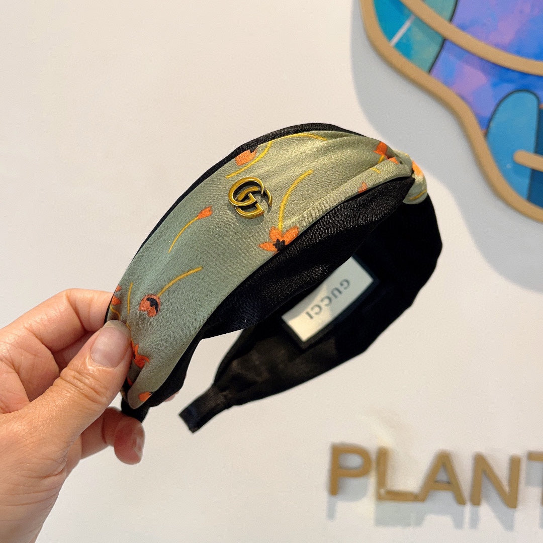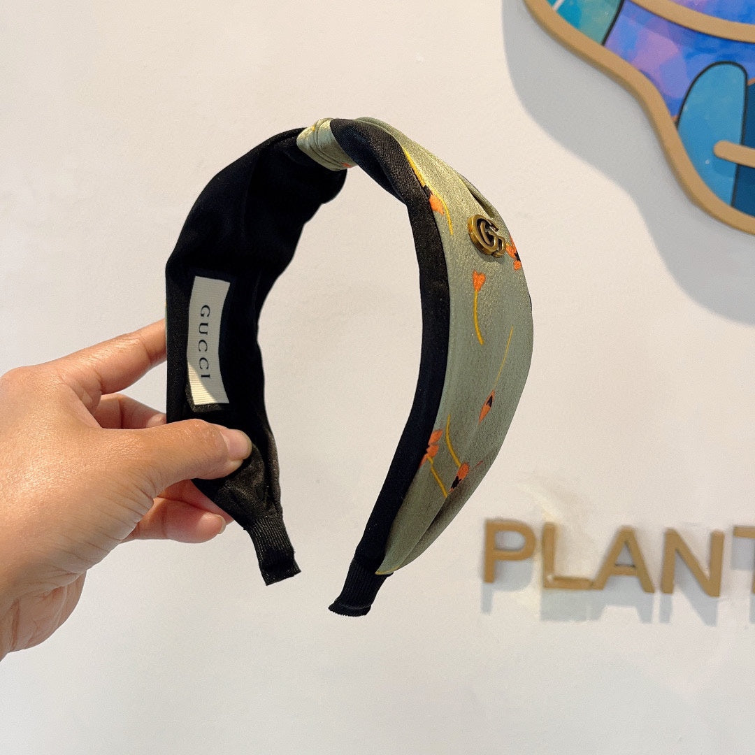 HAIRBAND WITH FLOWER PRINT IN MOSS GREEN SILK 398865