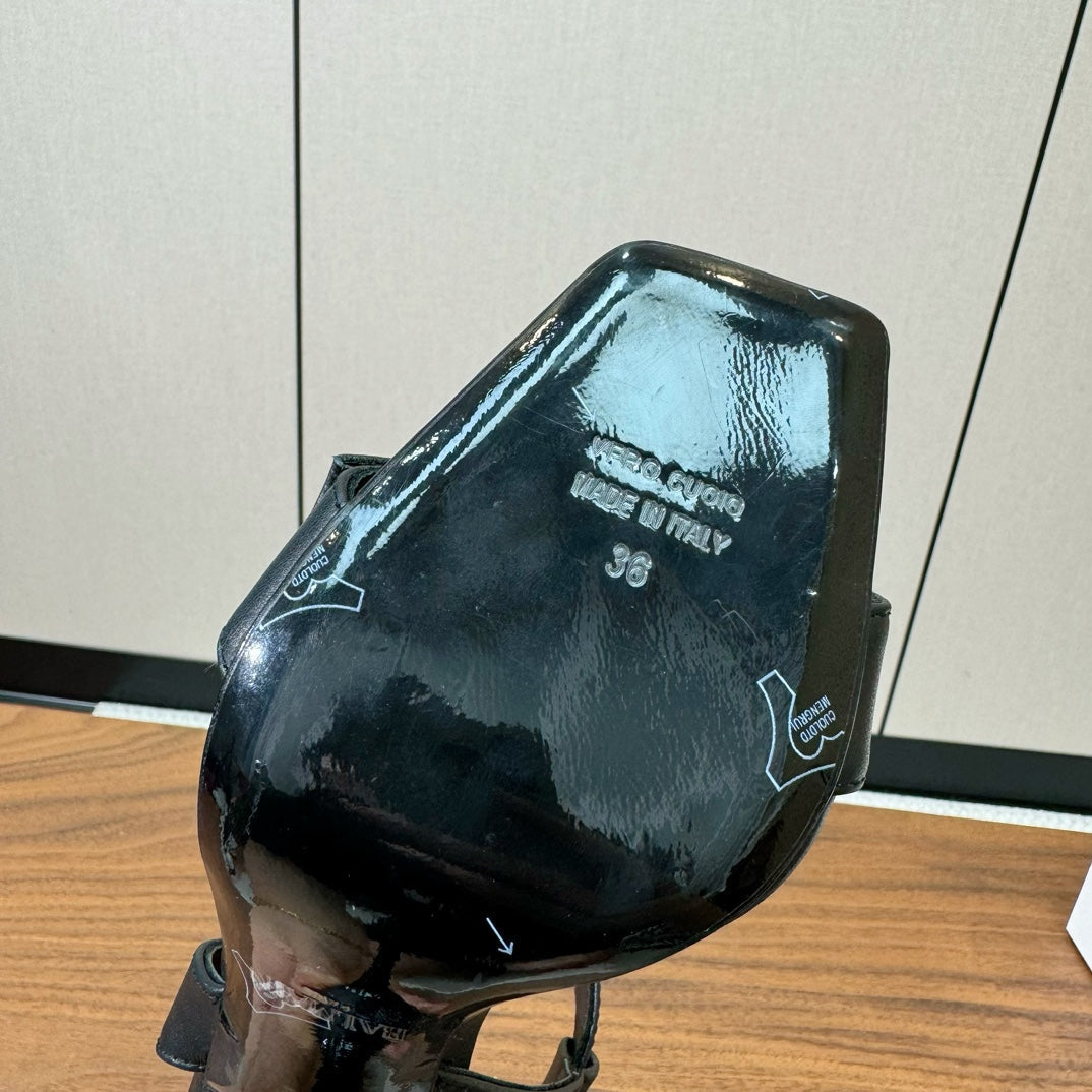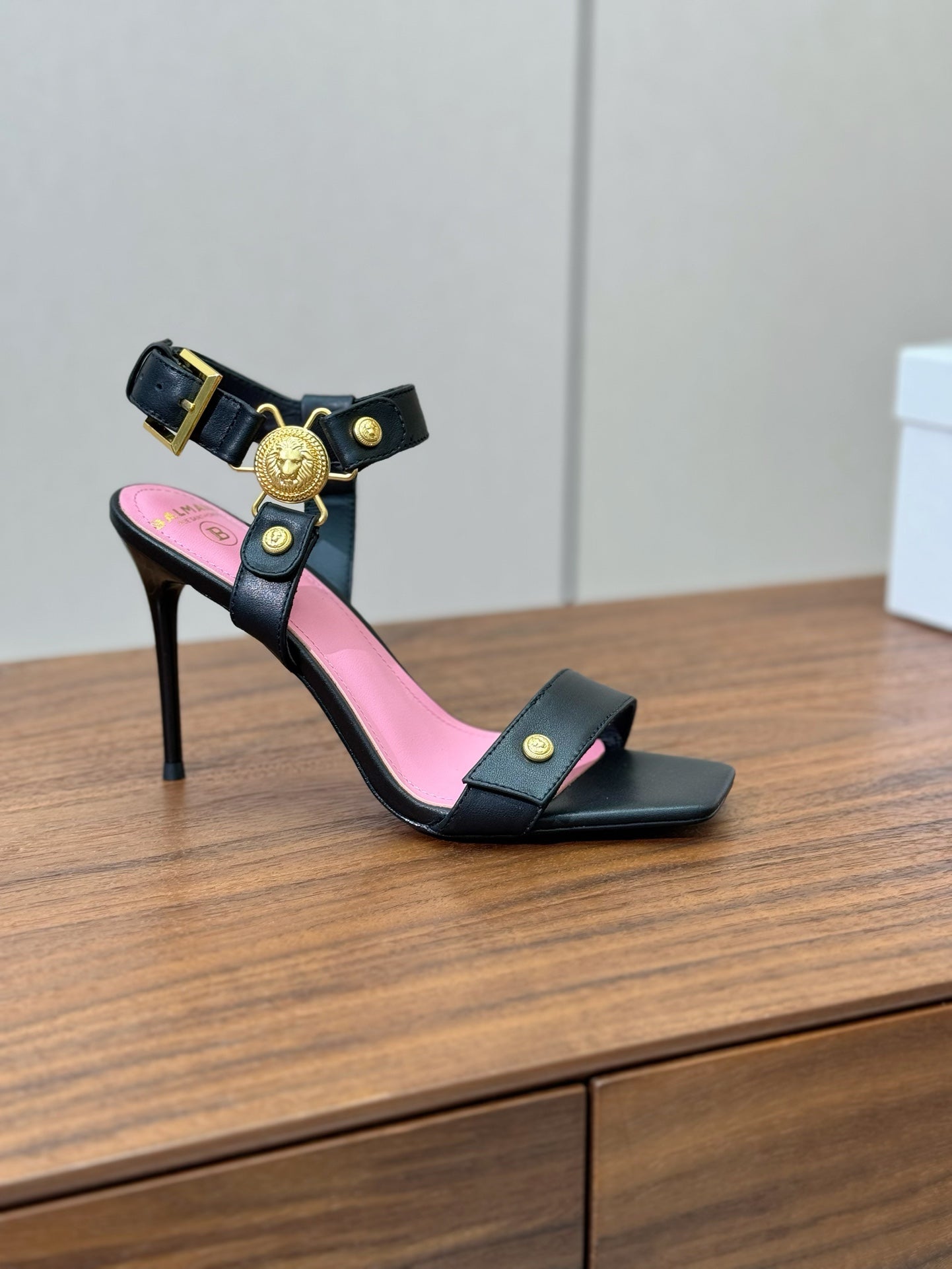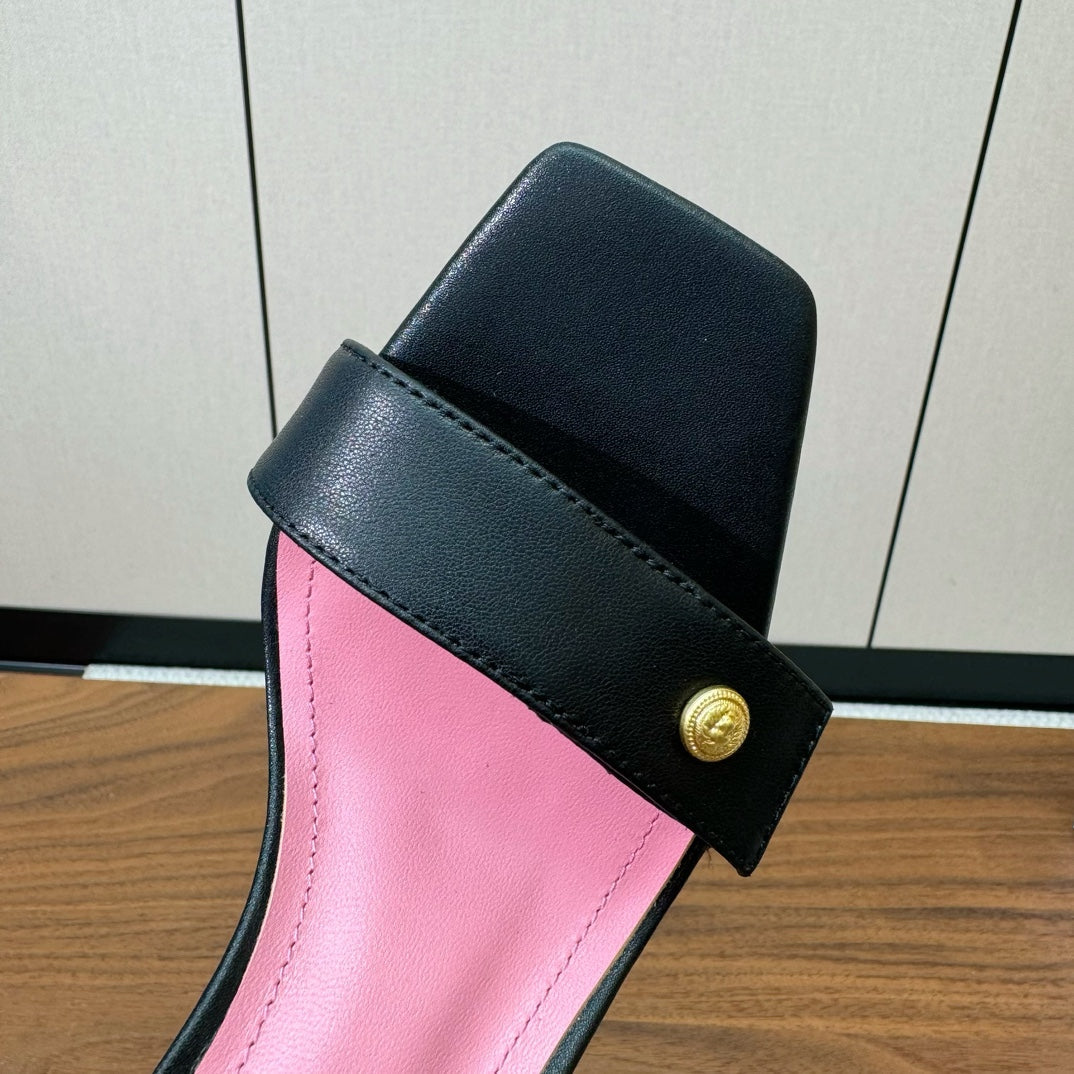 BALMAIN 25S HEELED EVA SANDALS 95MM IN BLACK AND PINK CALFSKIN