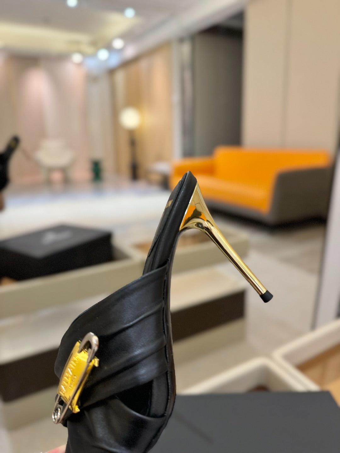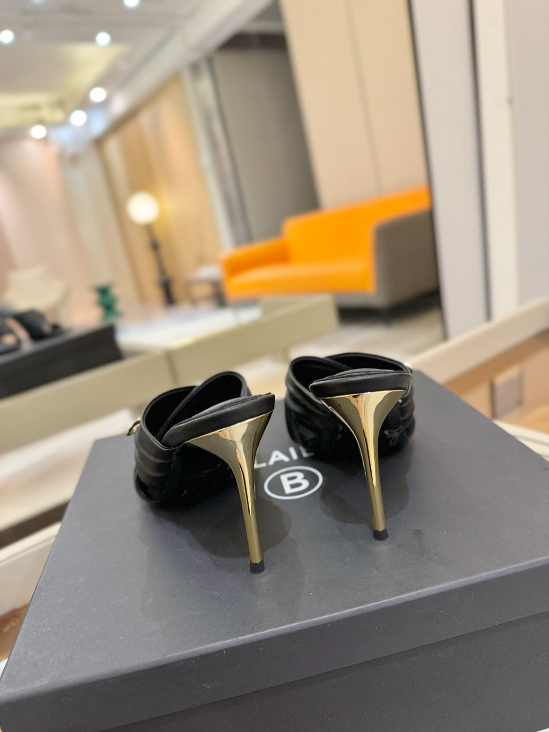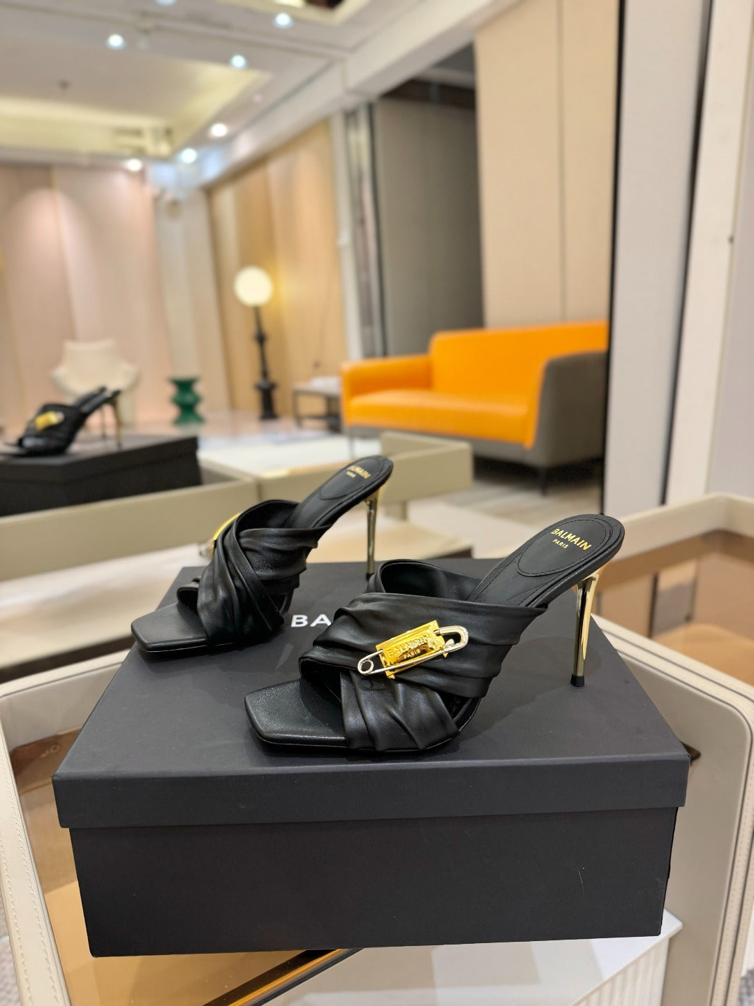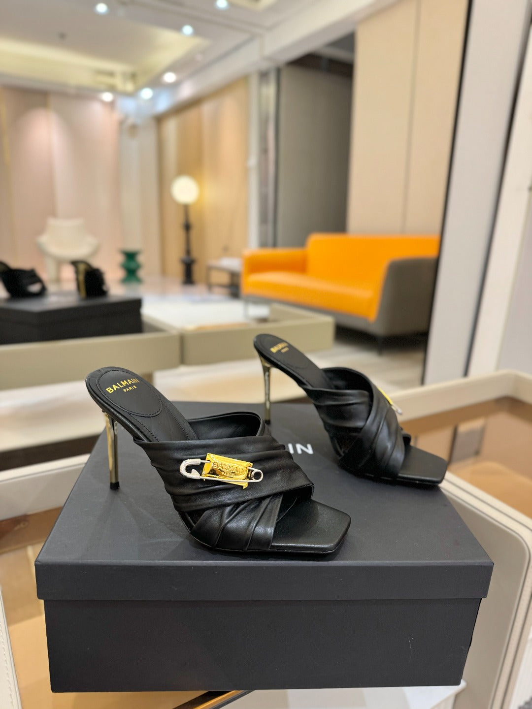 BALMAIN 25S HIGH HEEL SANDALS 95MM IN BLACK CALFSKIN