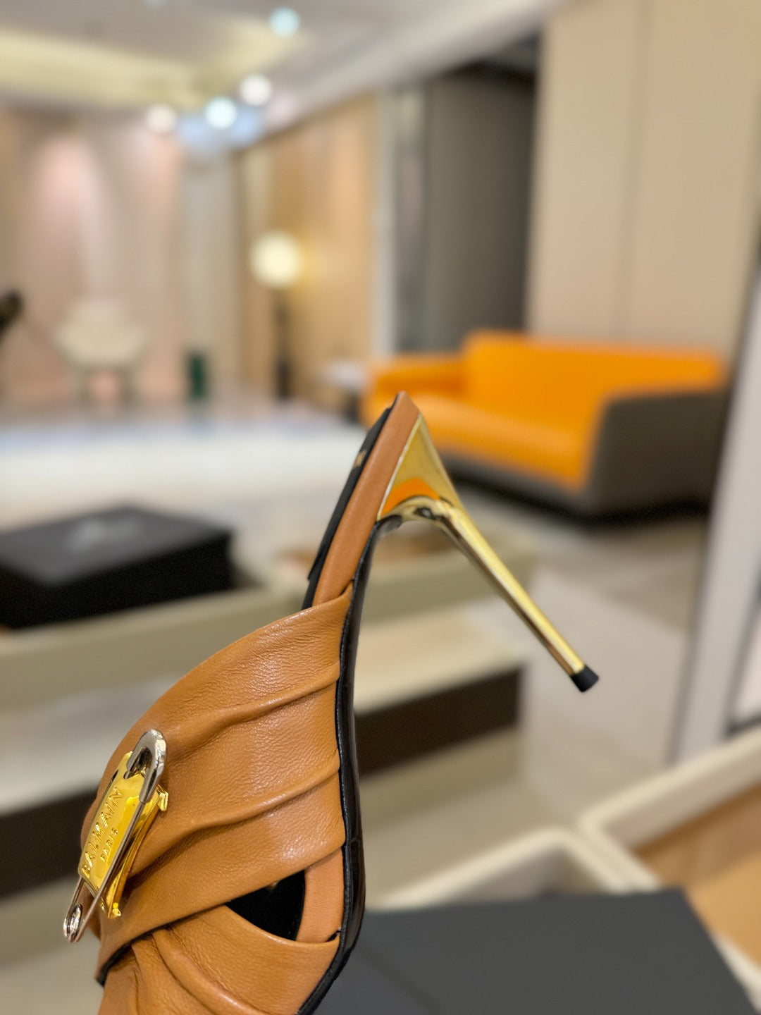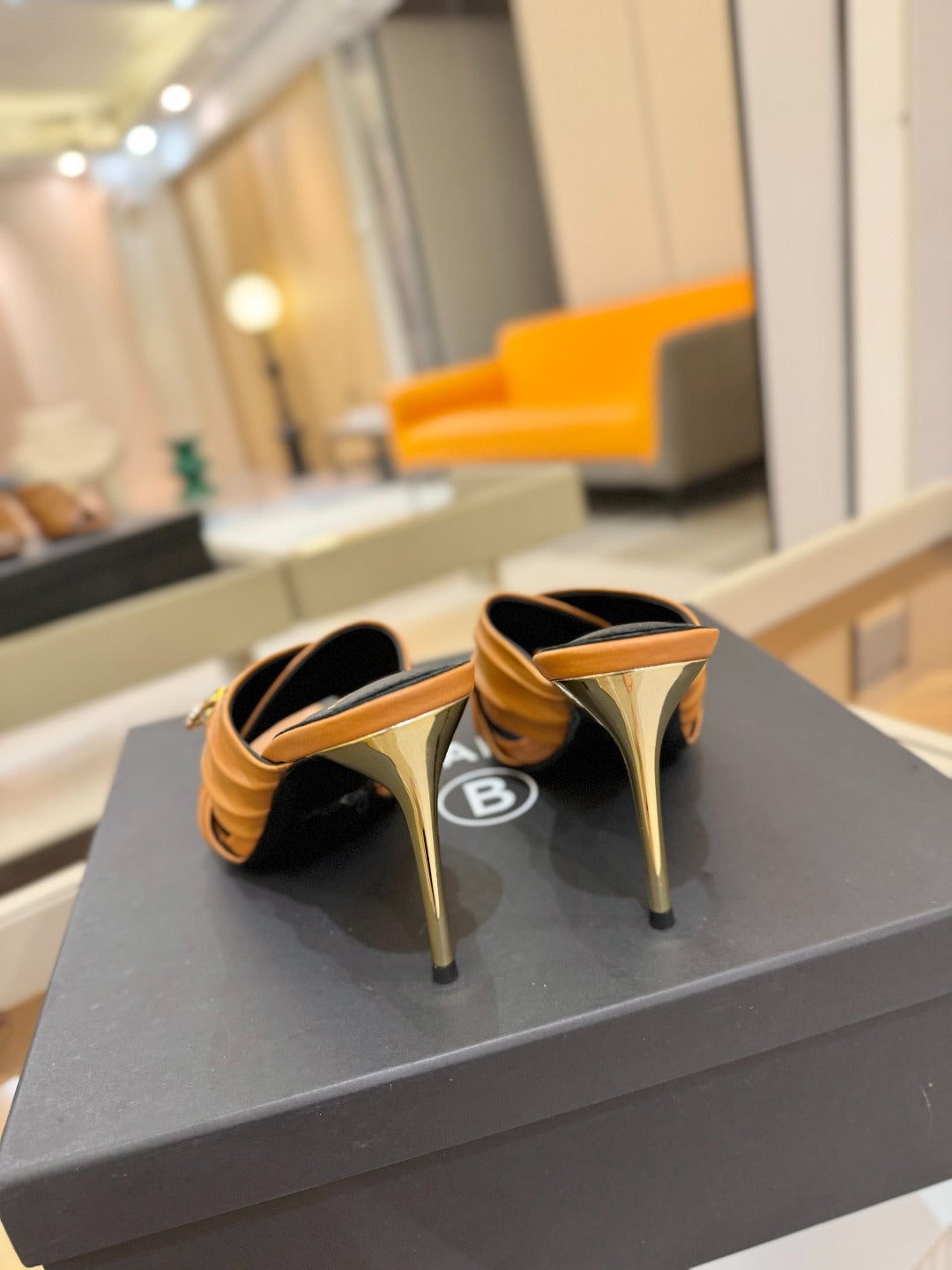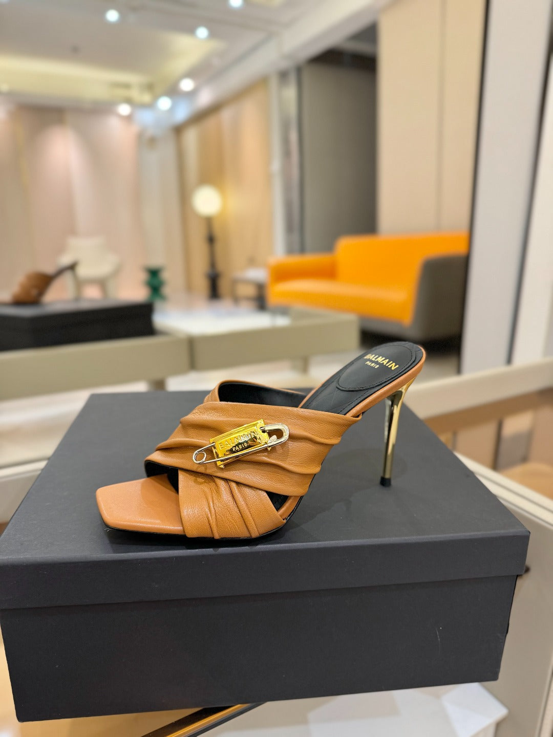 BALMAIN 25S HIGH HEEL SANDALS 95MM IN BROWN CALFSKIN