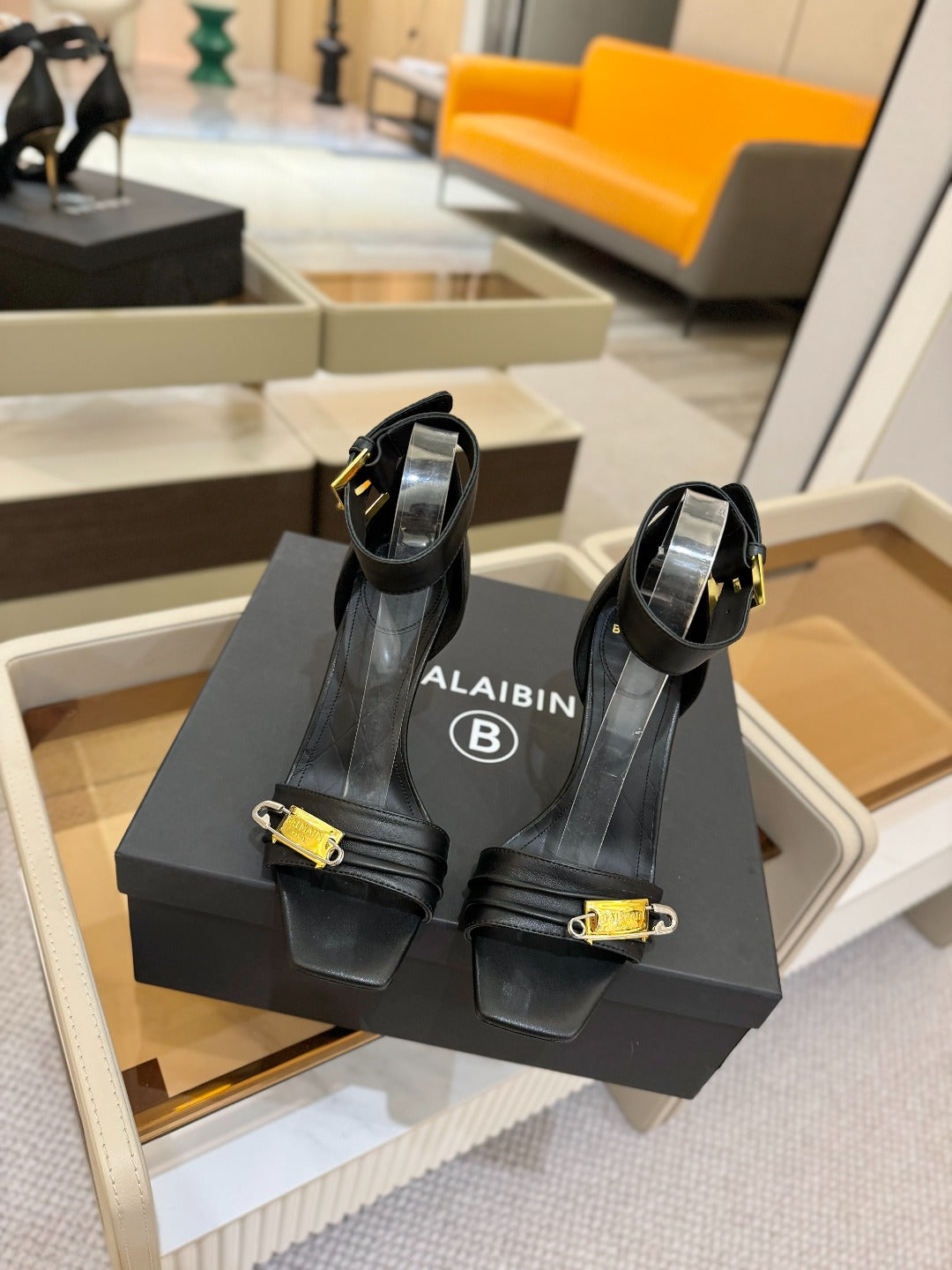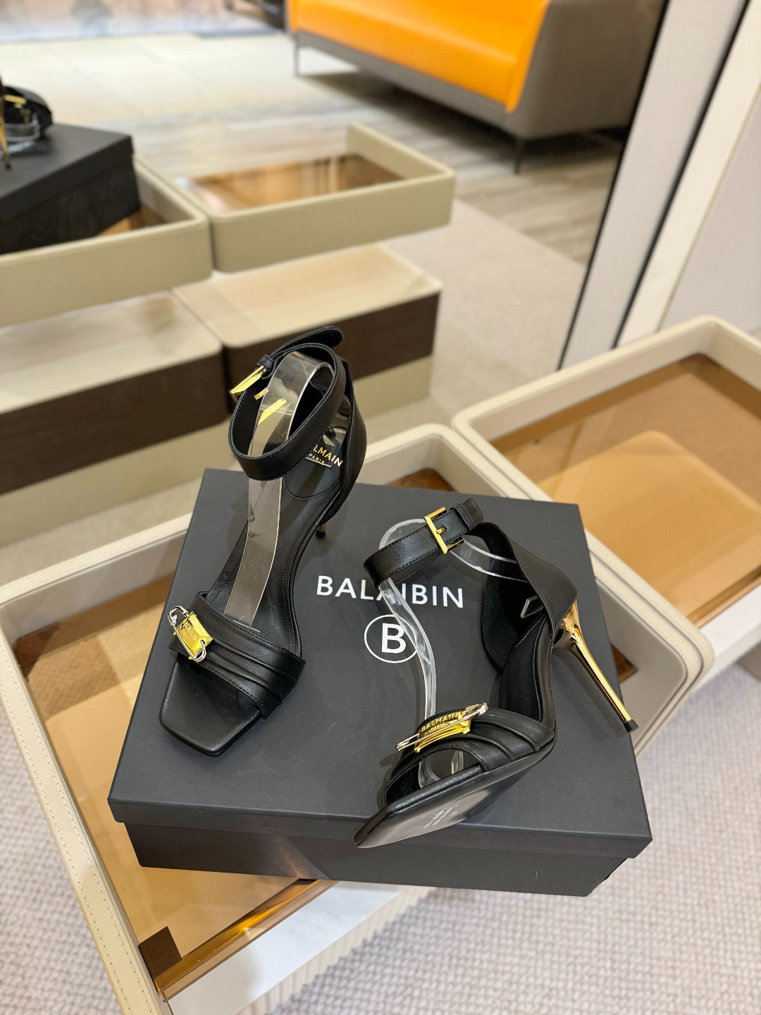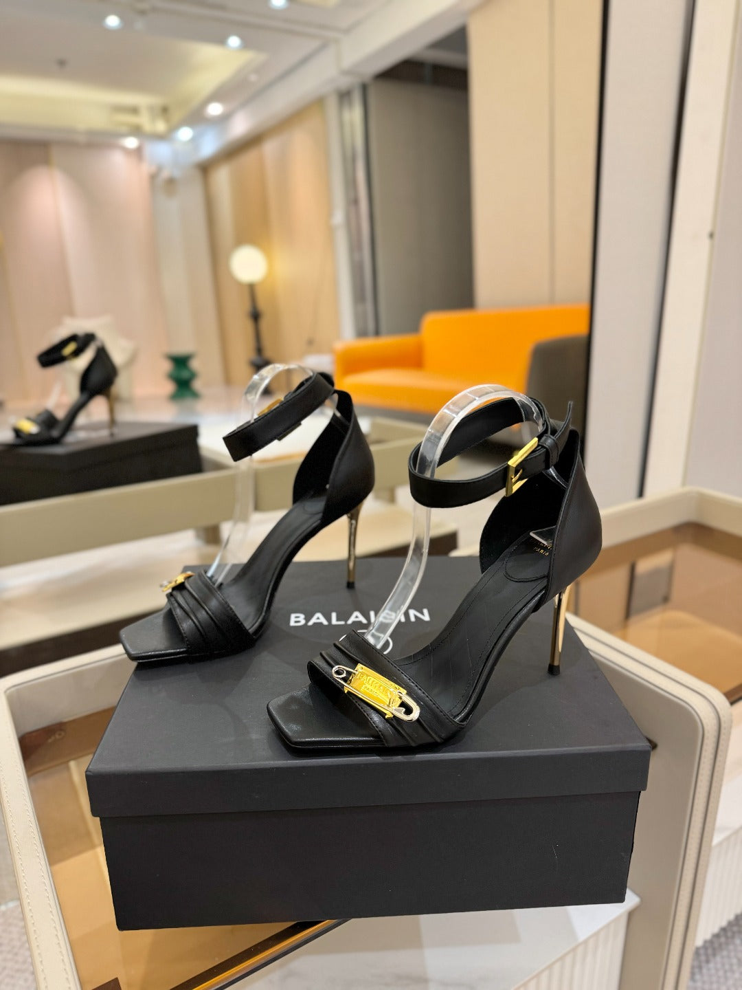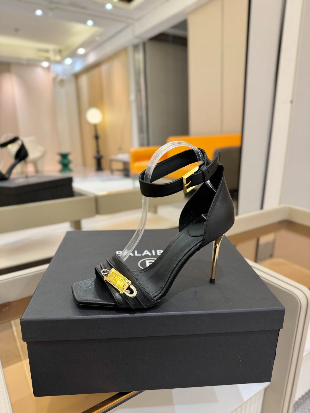 BALMAIN 25S HIGH HEELS 95MM IN BLACK CALFSKIN