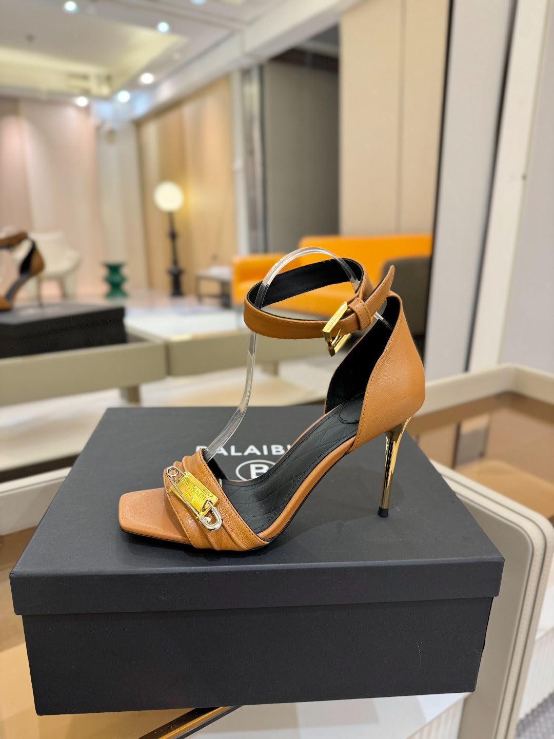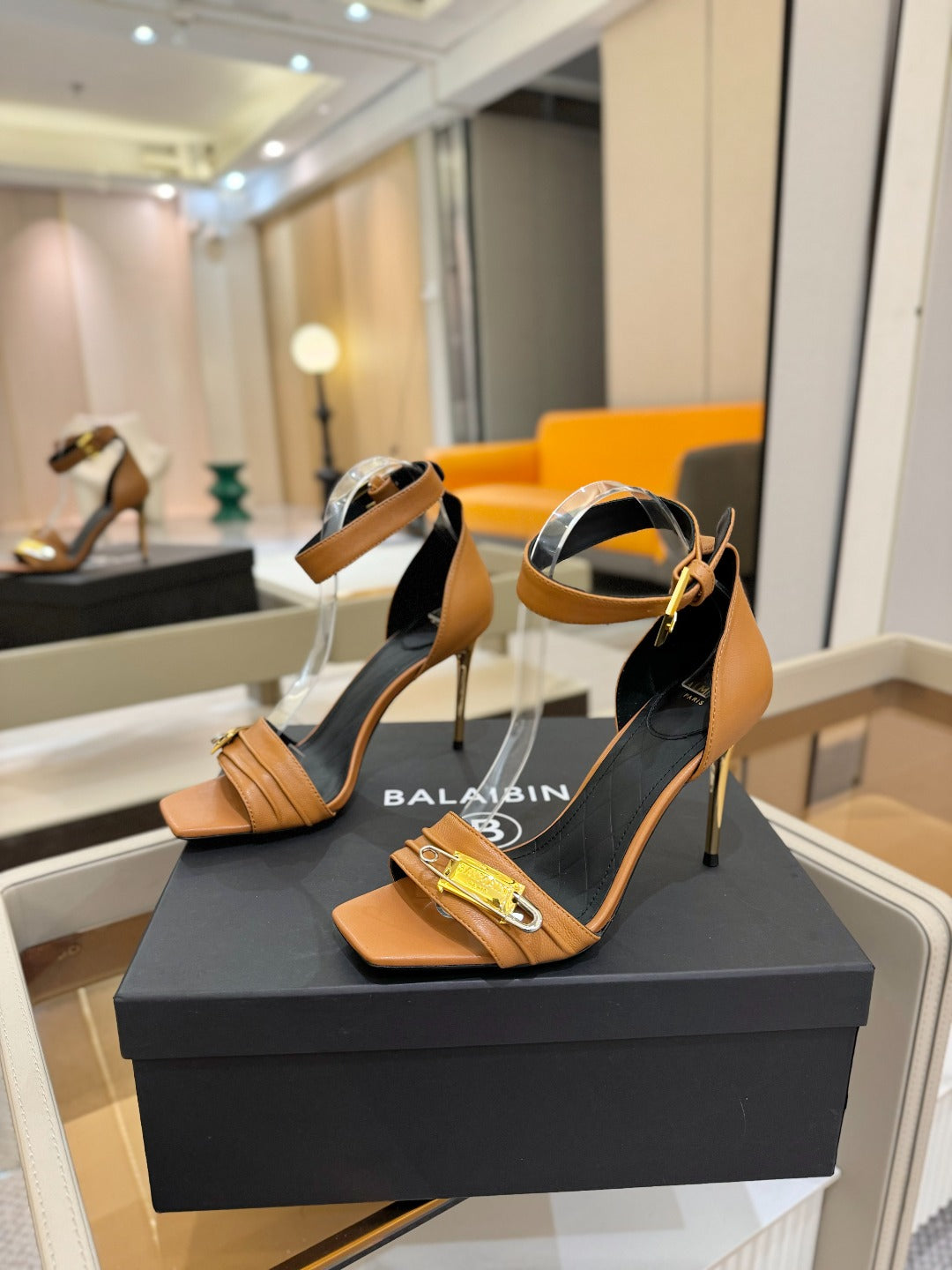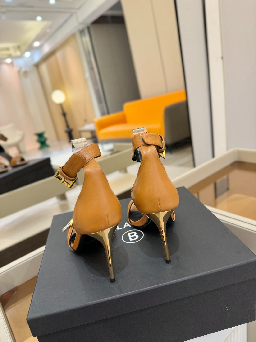 BALMAIN 25S HIGH HEELS 95MM IN BROWN CALFSKIN