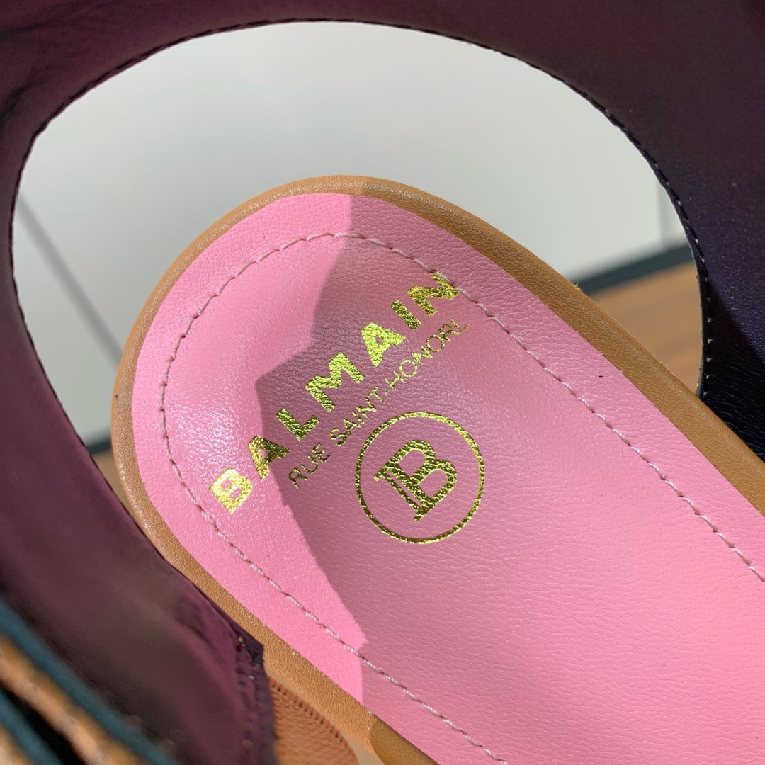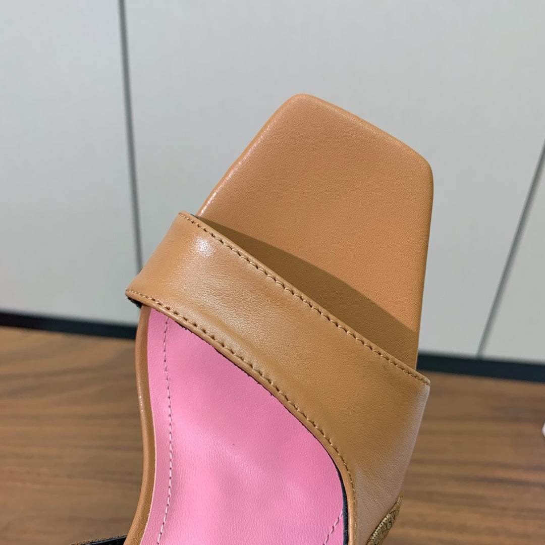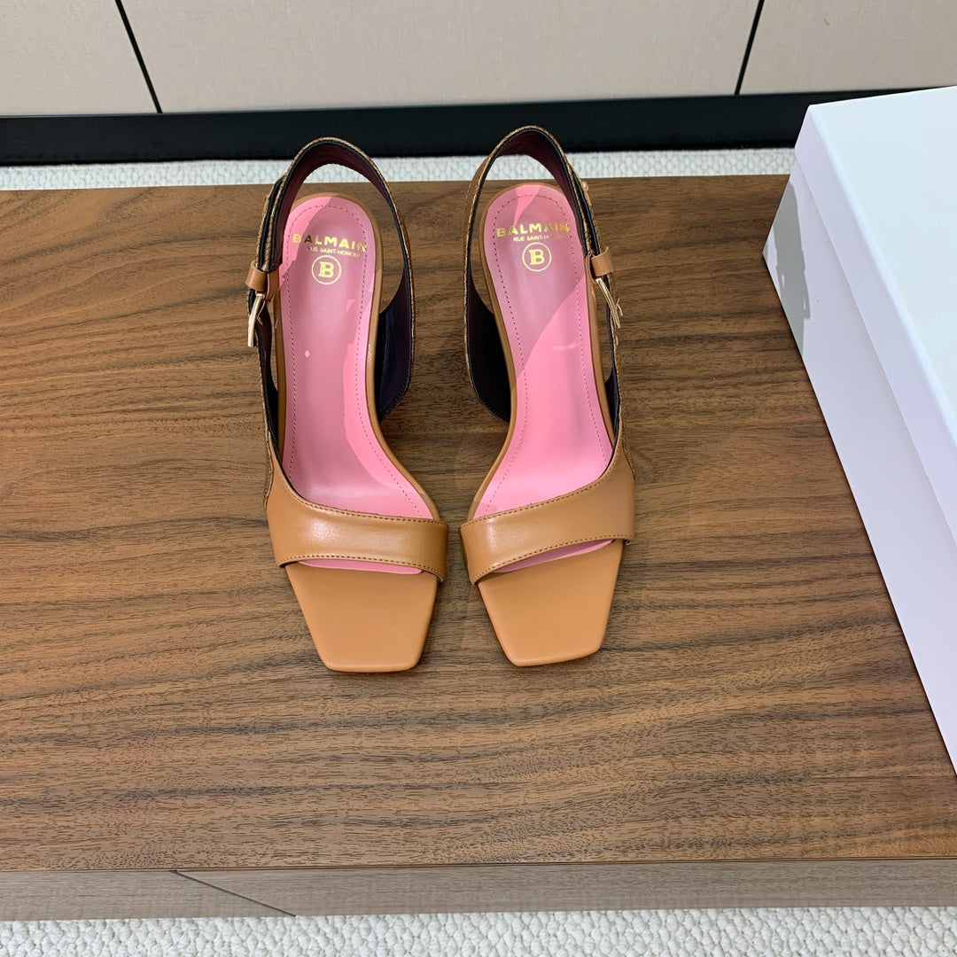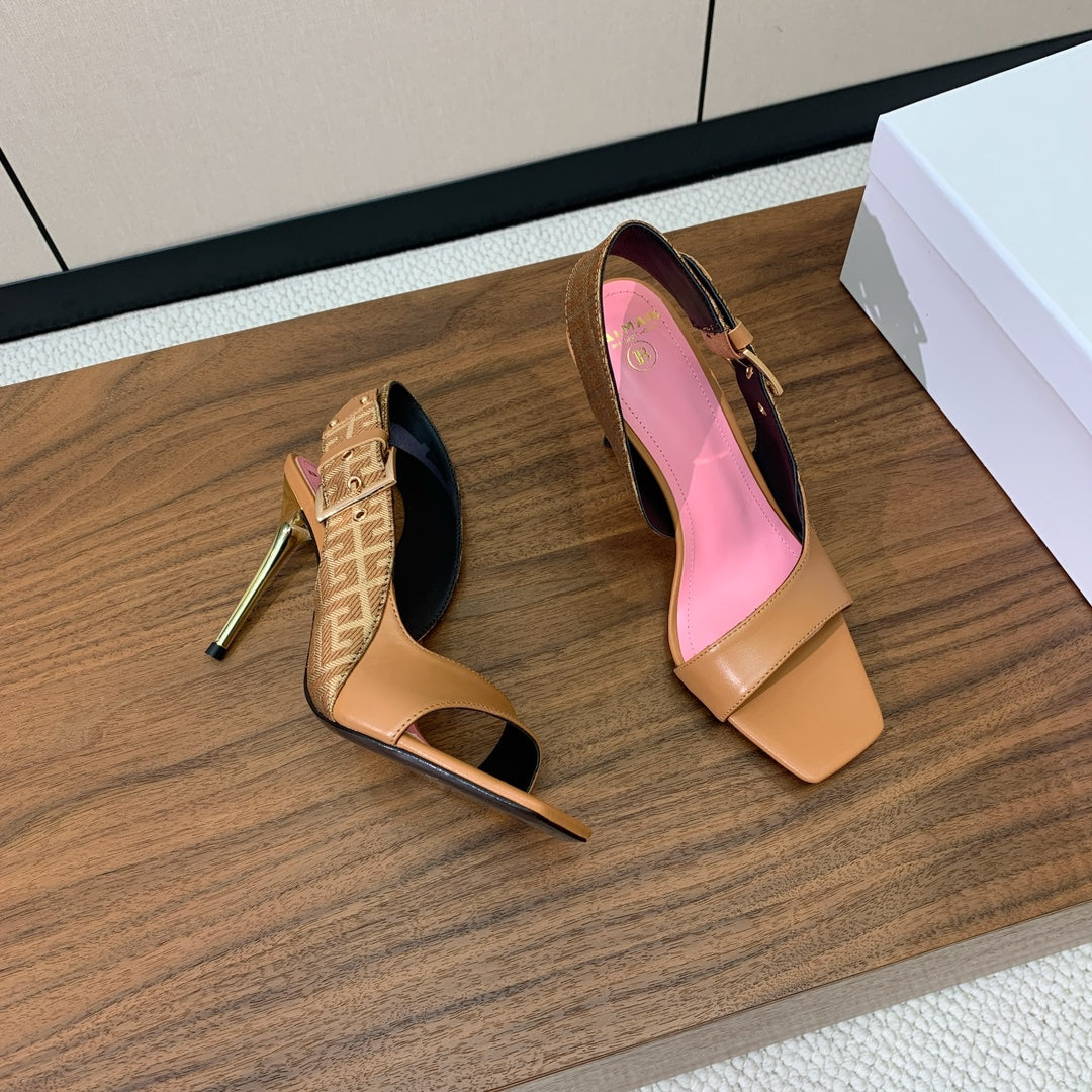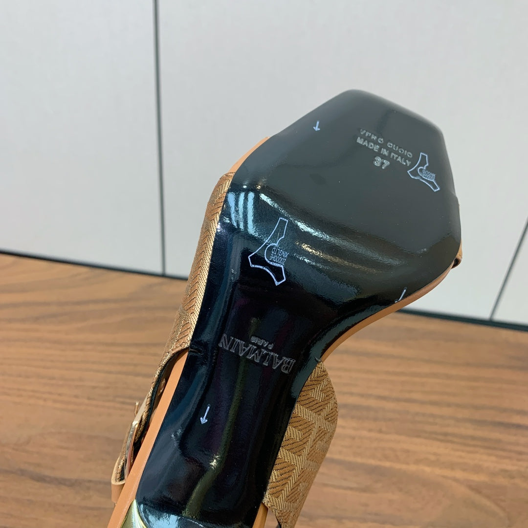 BALMAIN 25S JACQUARD KNIT SLINGBACK PUMPS 95MM IN BROWN AND PINK CALFSKIN