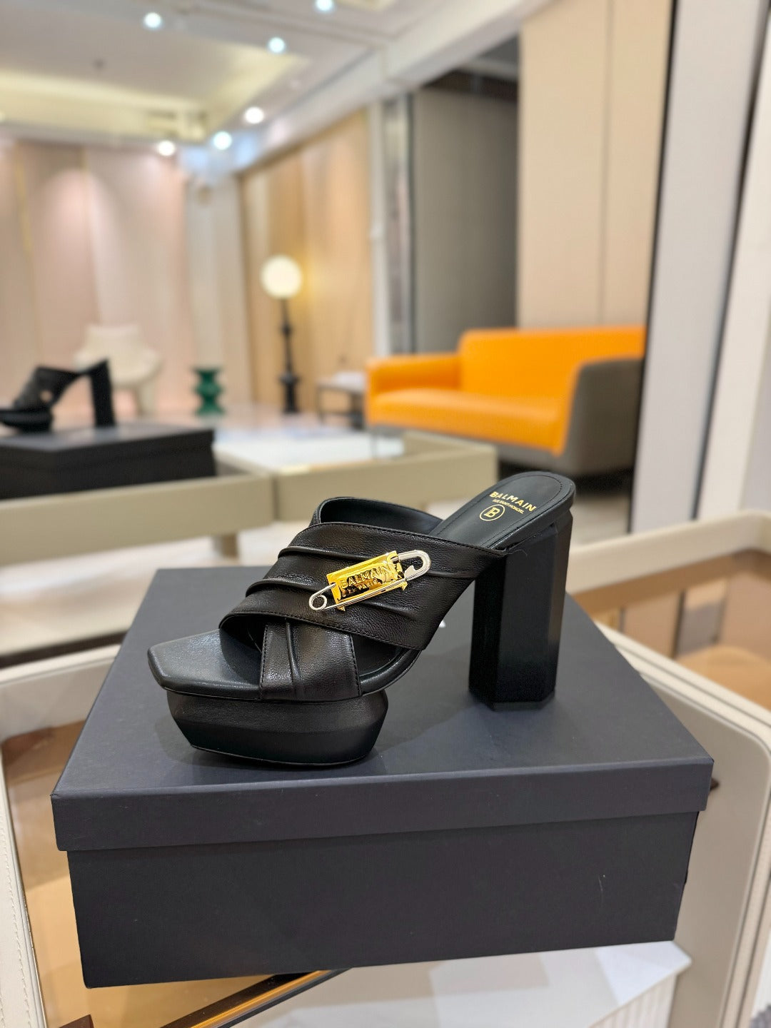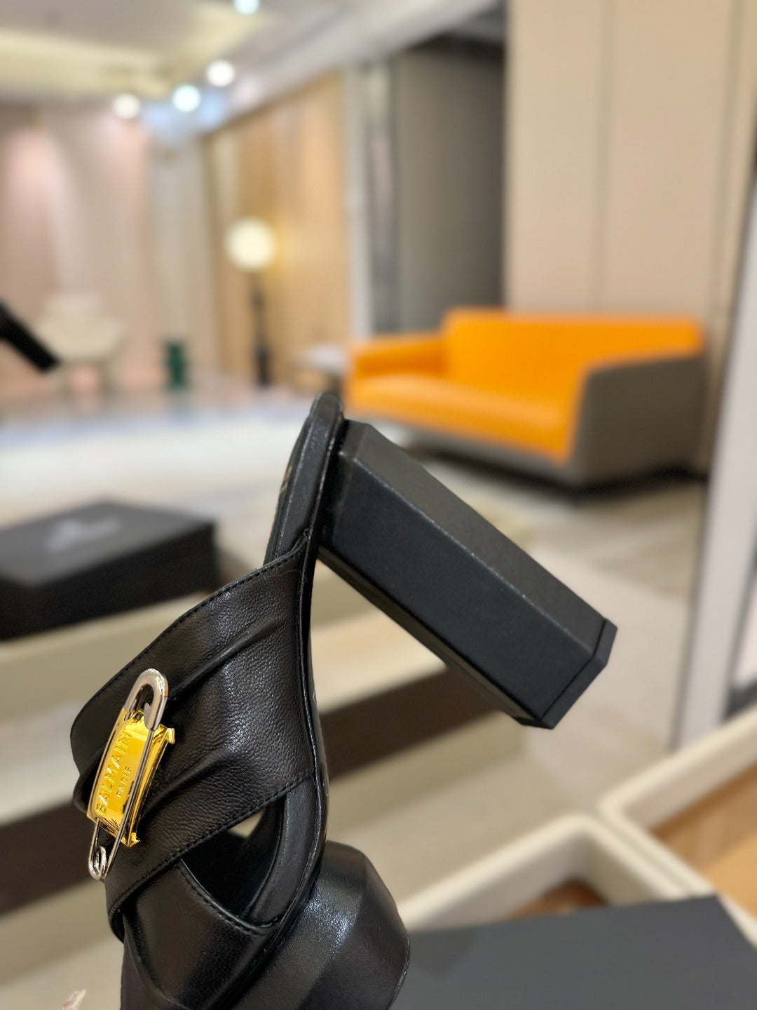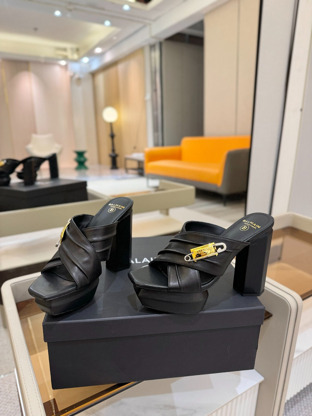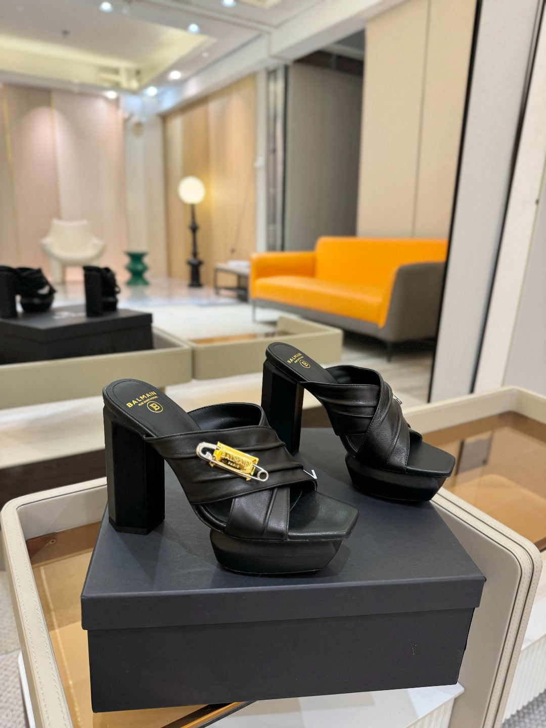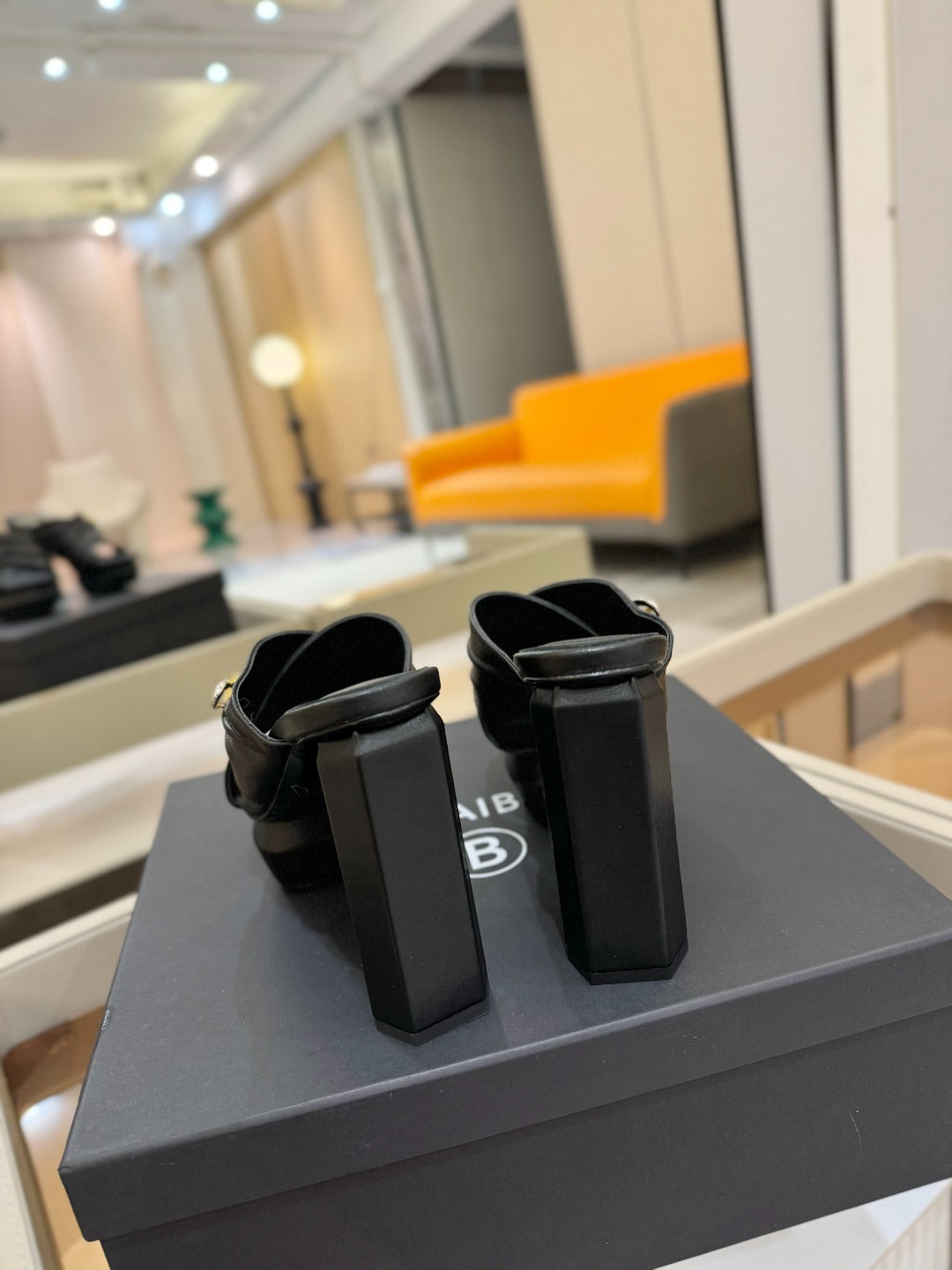 BALMAIN 25S WEDGE HEEL SANDALS 100MM IN BLACK CALFSKIN