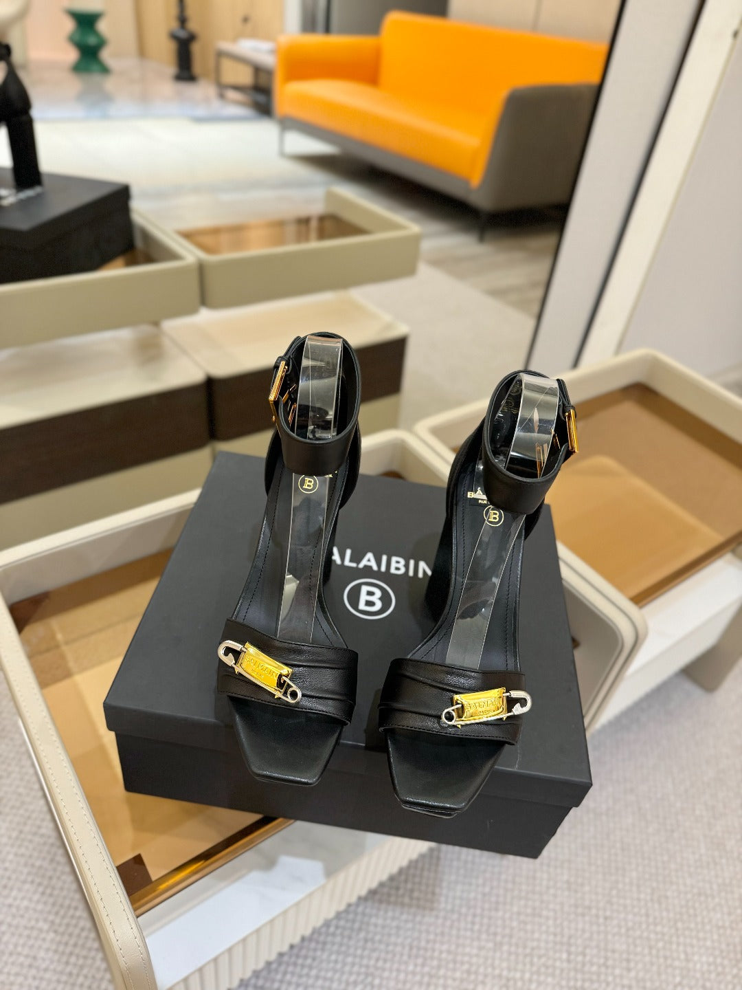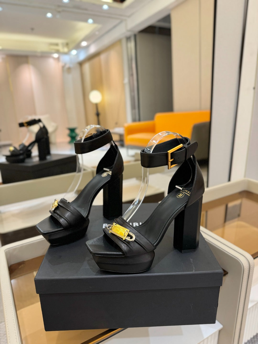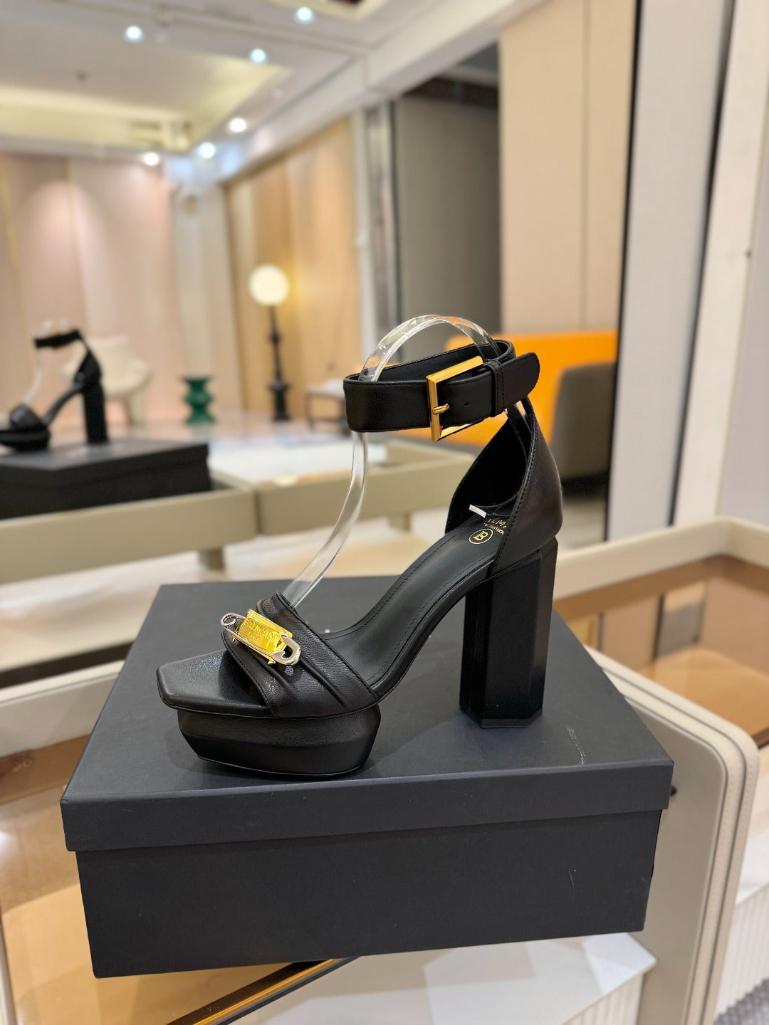 BALMAIN 25S WEDGE HEELS 100MM IN BLACK CALFSKIN