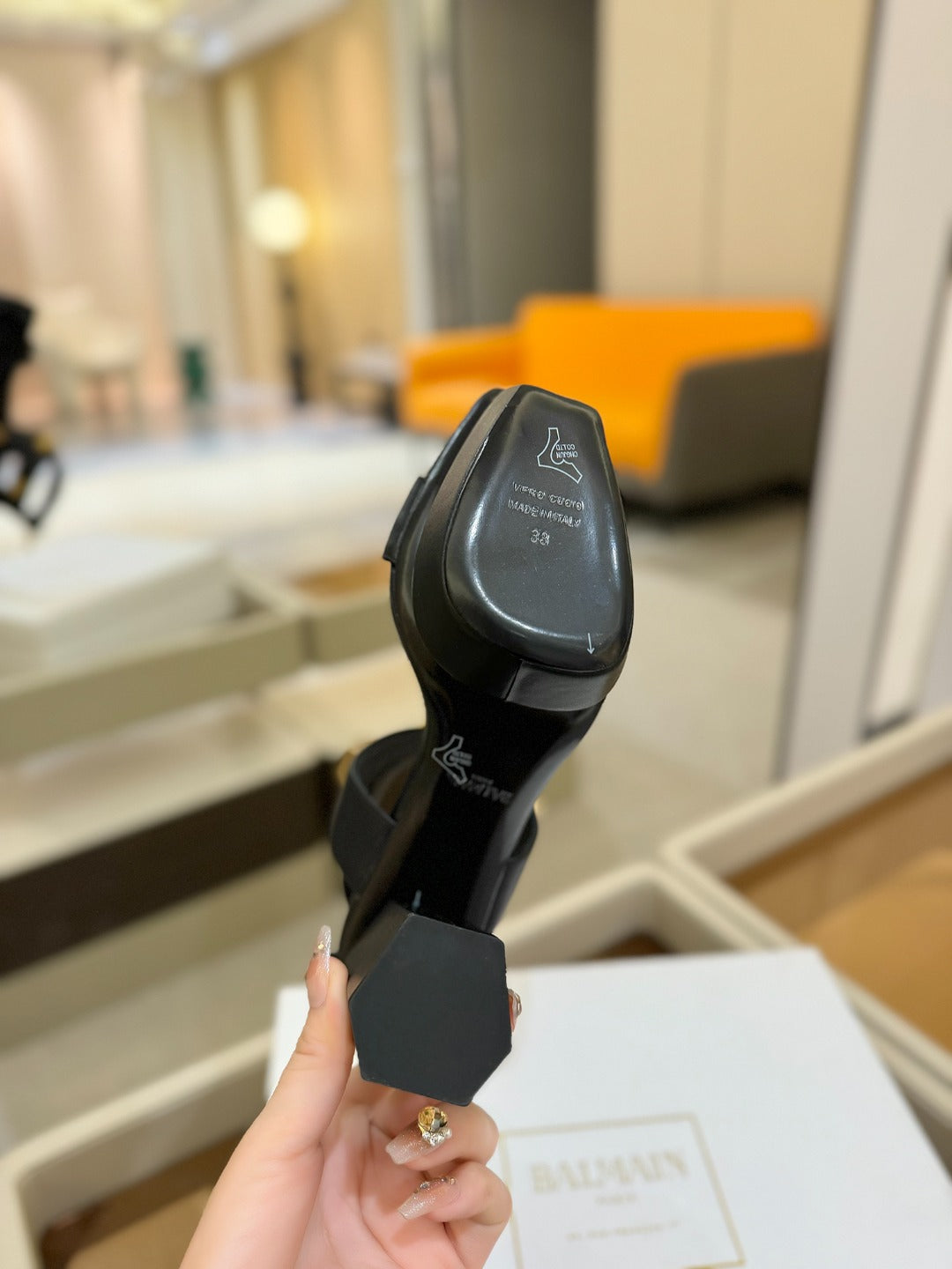 BALMAIN 25S WEDGE HEELS 105MM IN BLACK CALFSKIN GOLD HARDWARE