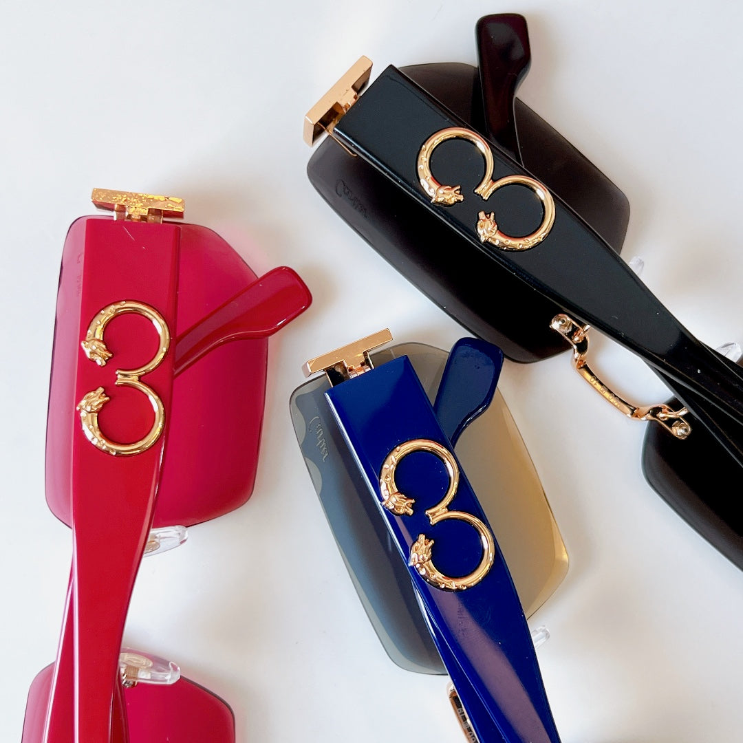 PANTHÈRE RIMLESS RECTANGULAR FRAME SUNGLASSES CT0637S IN METAL