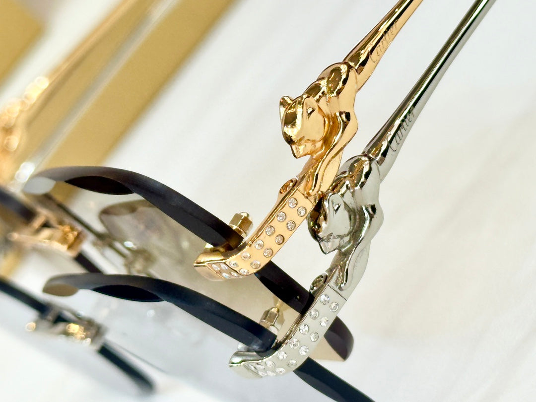 PANTHÈRE RIMLESS RECTANGULAR FRAME SUNGLASSES CT0687S IN METAL