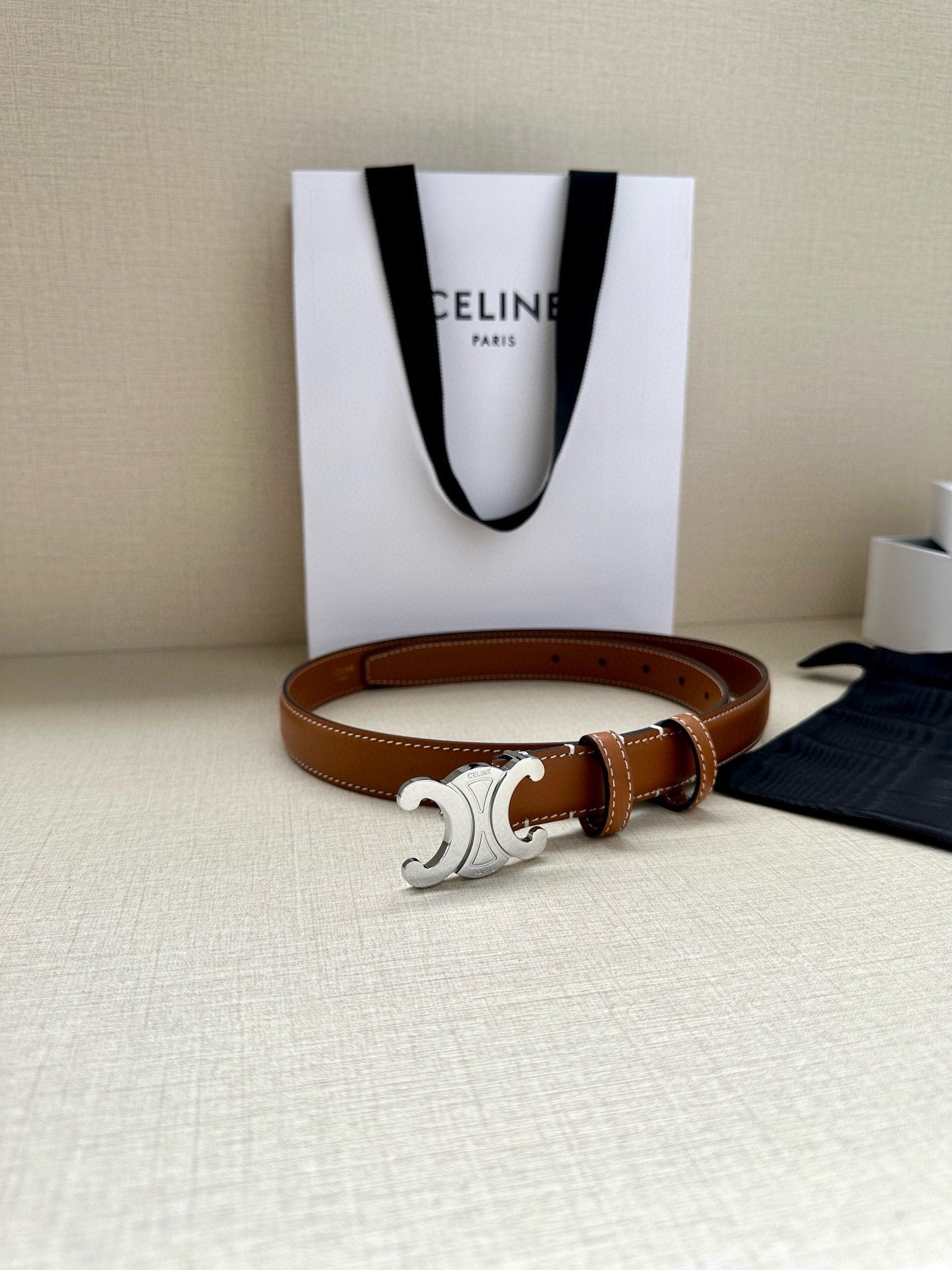 CELINE 25S BELT TRIOMPHE TAURILLON 25MM IN CARAMEL CALFSKIN 557501
