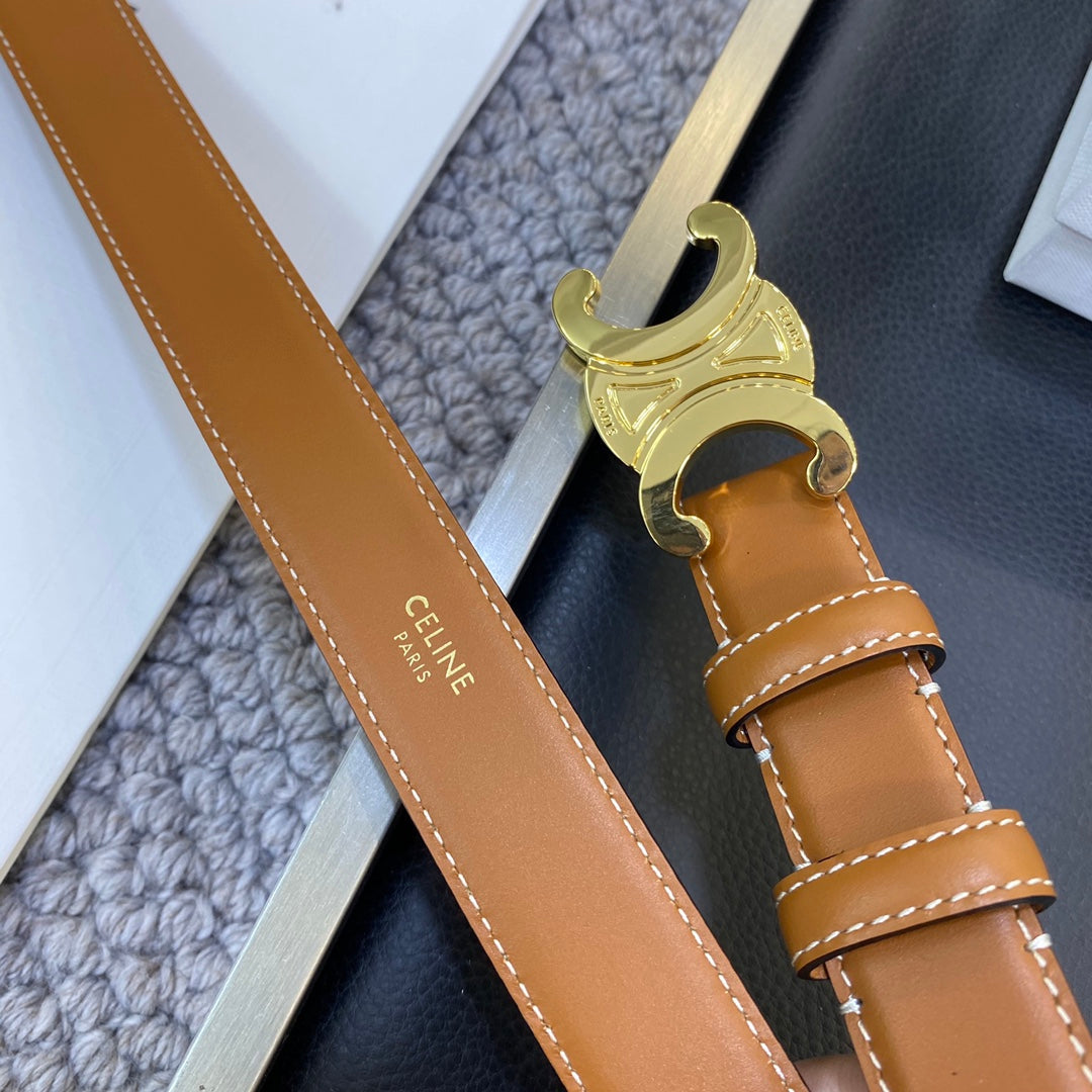 TRIOMPHE BELT 25MM IN BROWN CALFSKIN GOLD BUCKLE GOLD LOGO