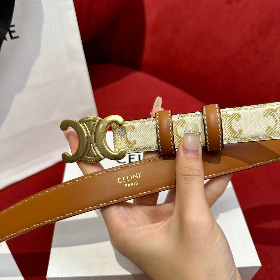TRIOMPHE BELT 25MM REVERSIBLE IN WHITE LOGO-PRINT AND BROWN CALFSKIN WITH GOLD BUCKLE