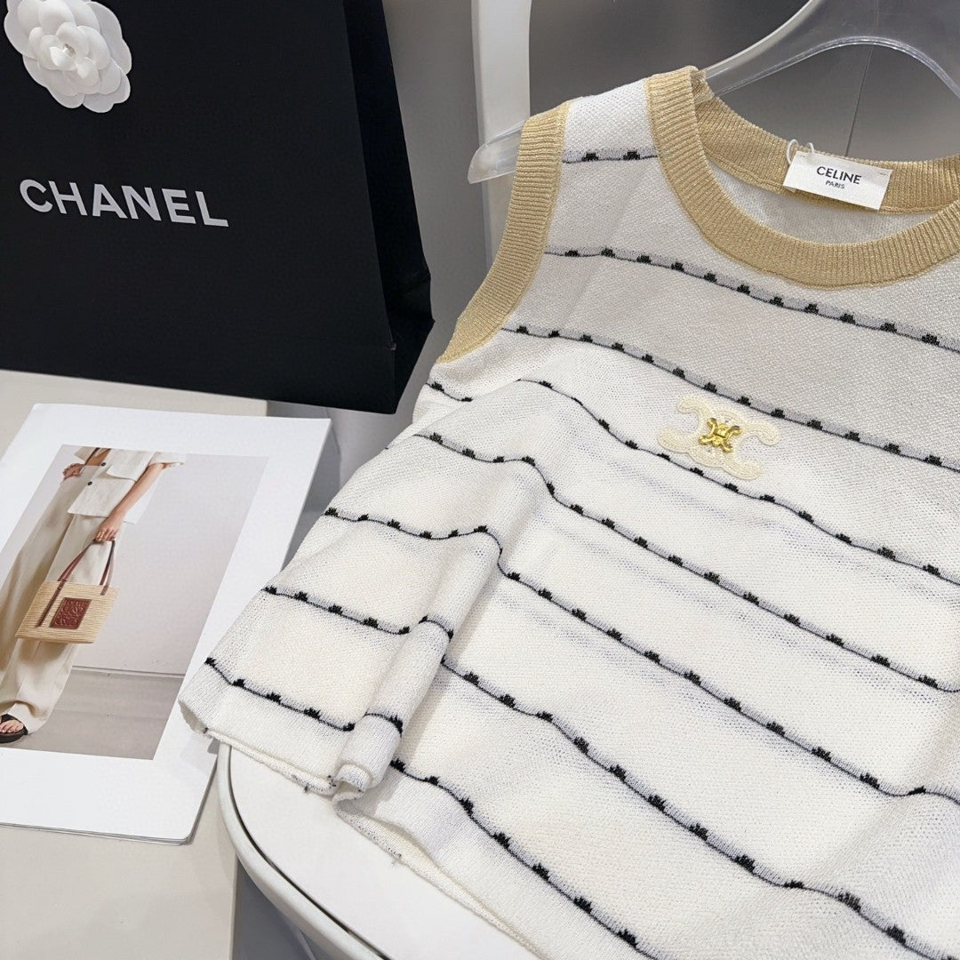 STRIPED TANK TOP 615178 IN WHITE COTTON RIBBED BEIGE TRIM
