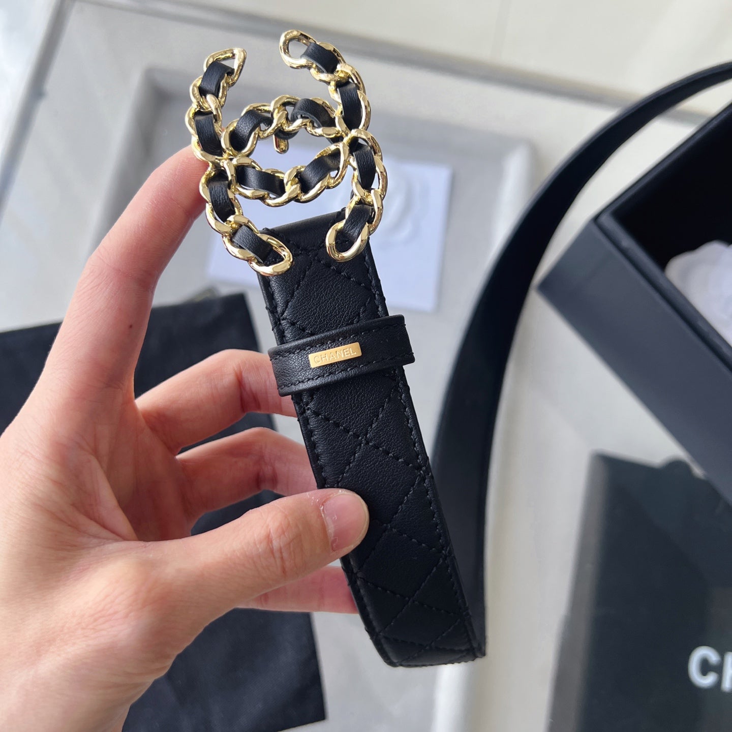 CHANEL 25S BELT 30 MM IN BLACK CALFSKIN 616607