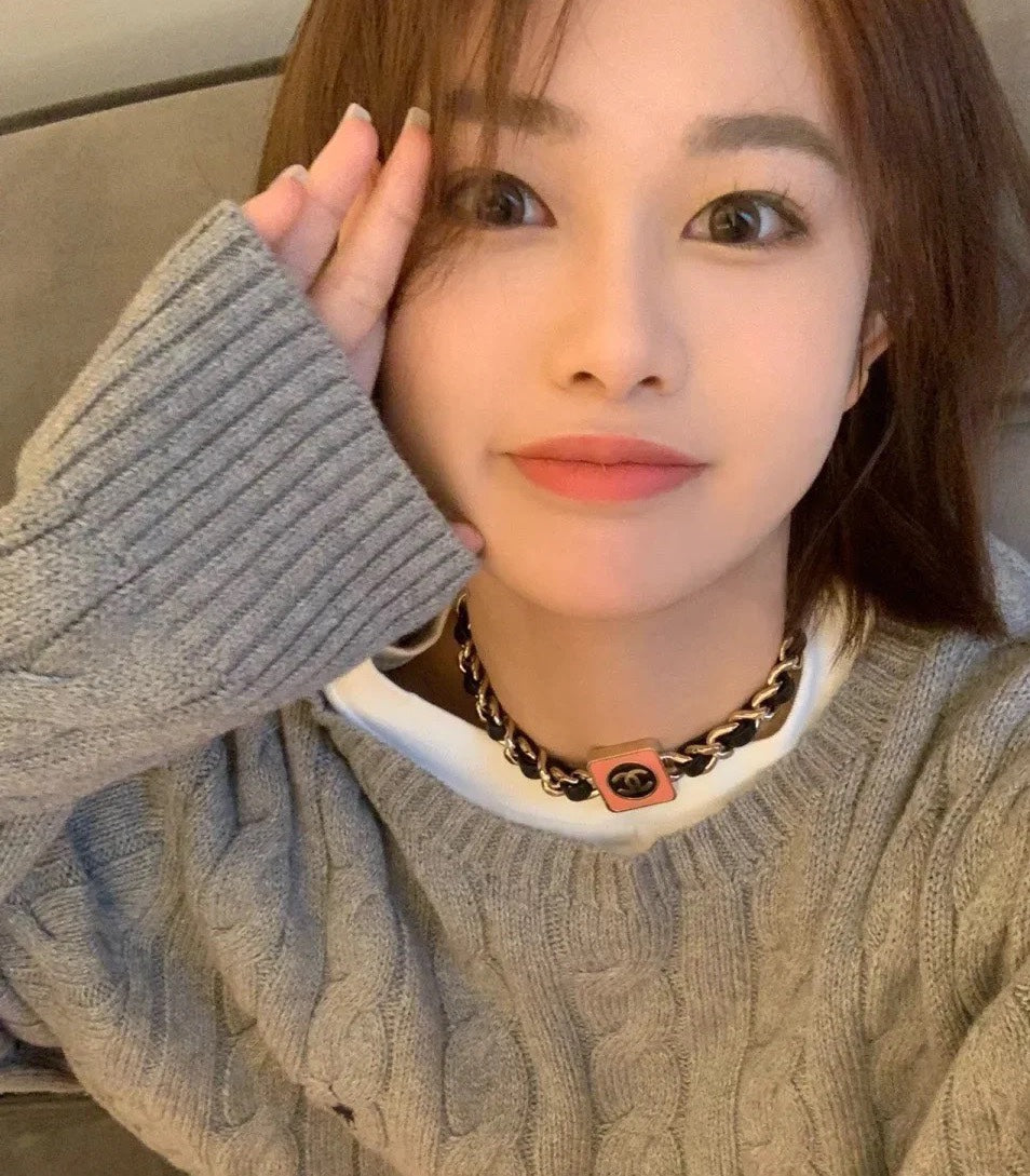 CHAIN CHOKER IN GOLD-PLATED METAL WITH LEATHER THROUGH LINKS