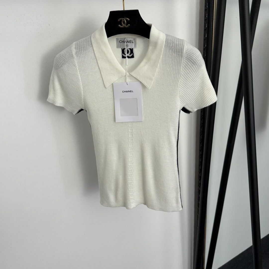 CHANEL 26S SHORT-SLEEVE KNIT POLO SHIRT 999