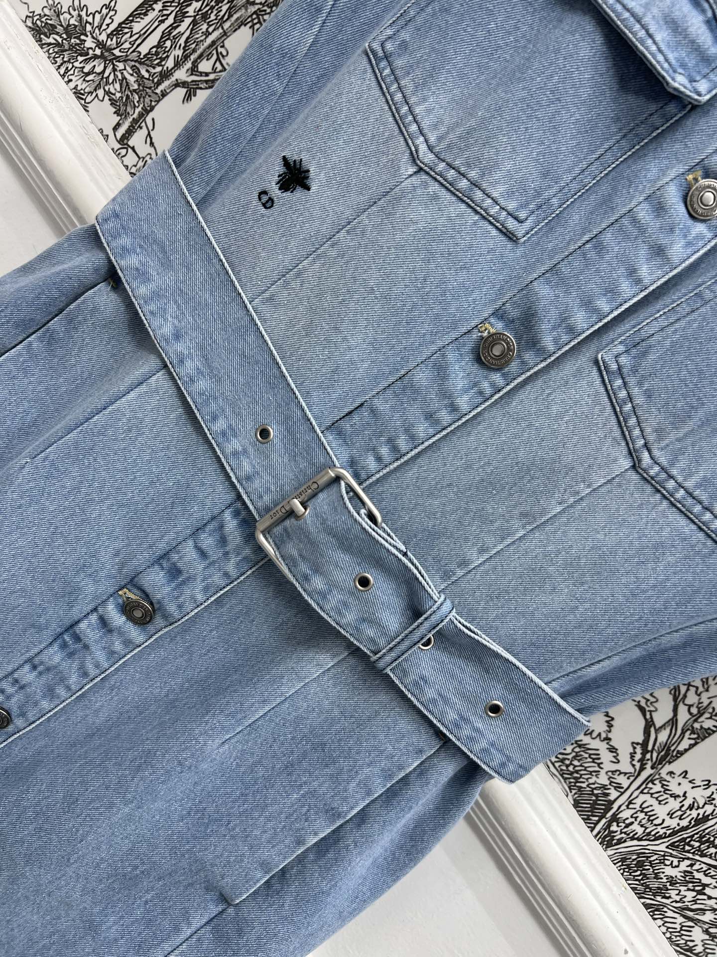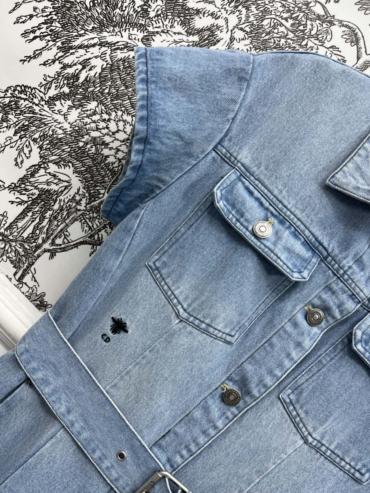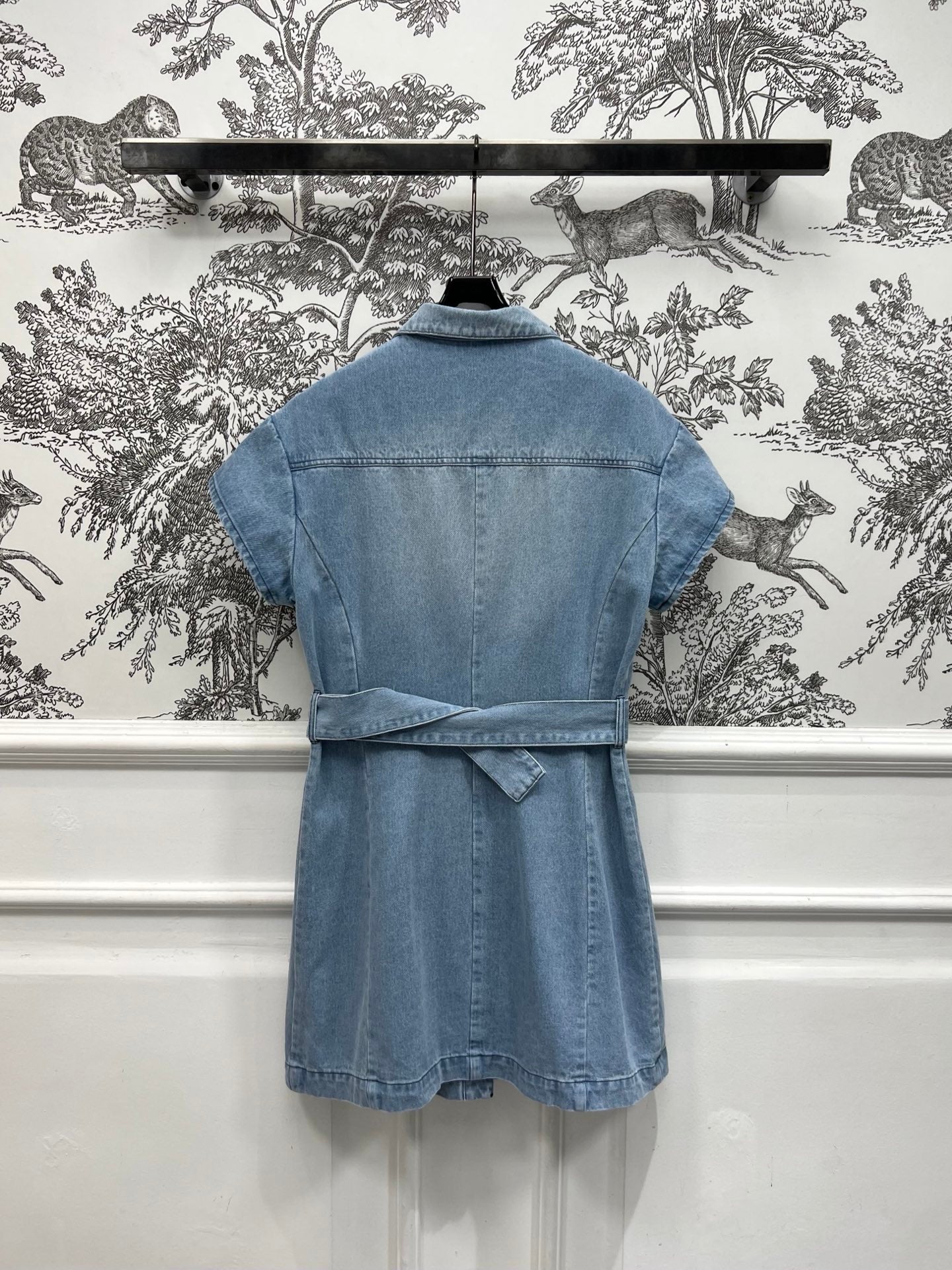 JEAN DRESS WITH FLUTTER SLEEVES DENIM JACQUARD DUSTY BLUE 266734