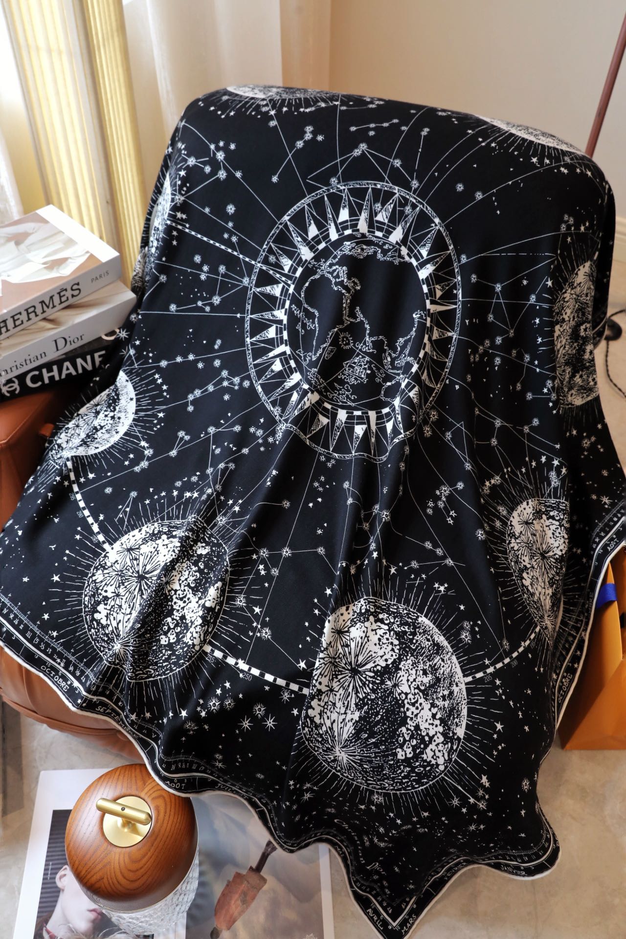 SQUARE SCARF 140 CM IN BLACK MIX WHITE MONOGRAM SILK 393136