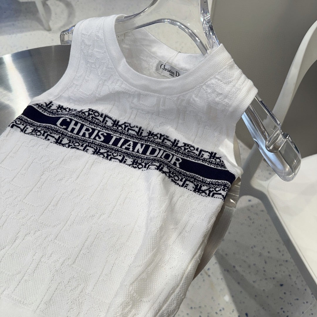 SLEEVELESS TOP 643222 IN WHITE COTTON BLACK LOGO