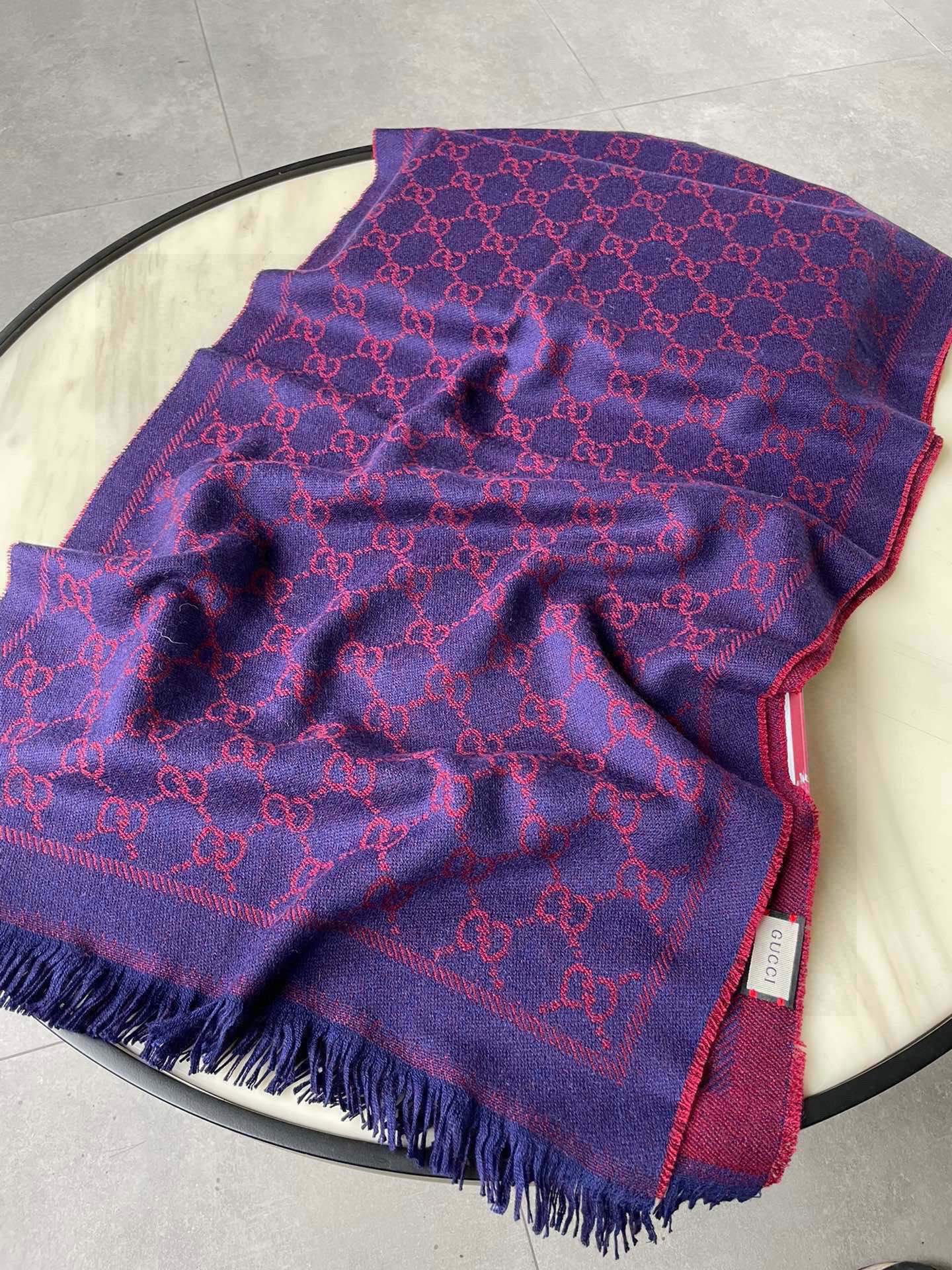 SCARF 180 CM IN VIOLET PURPLE GG PATTERN MONOGRAM WOOL 407526