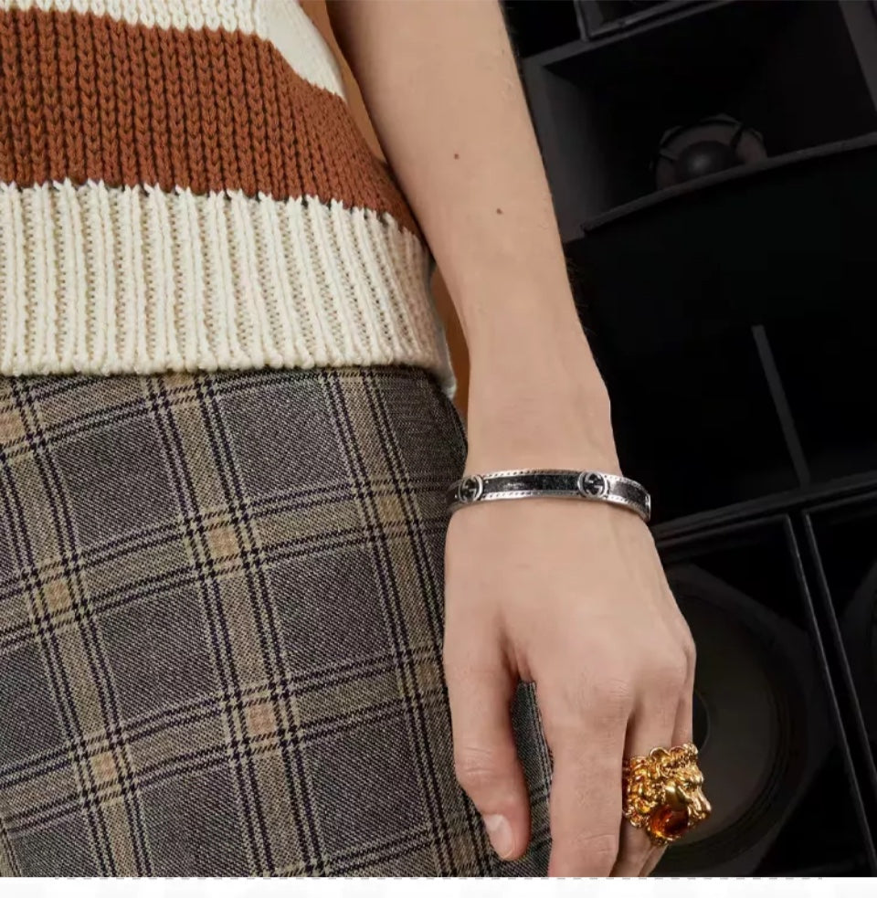 GG INTERLOCKING G ENAMEL CUFF BRACELET SILVER & BLACK