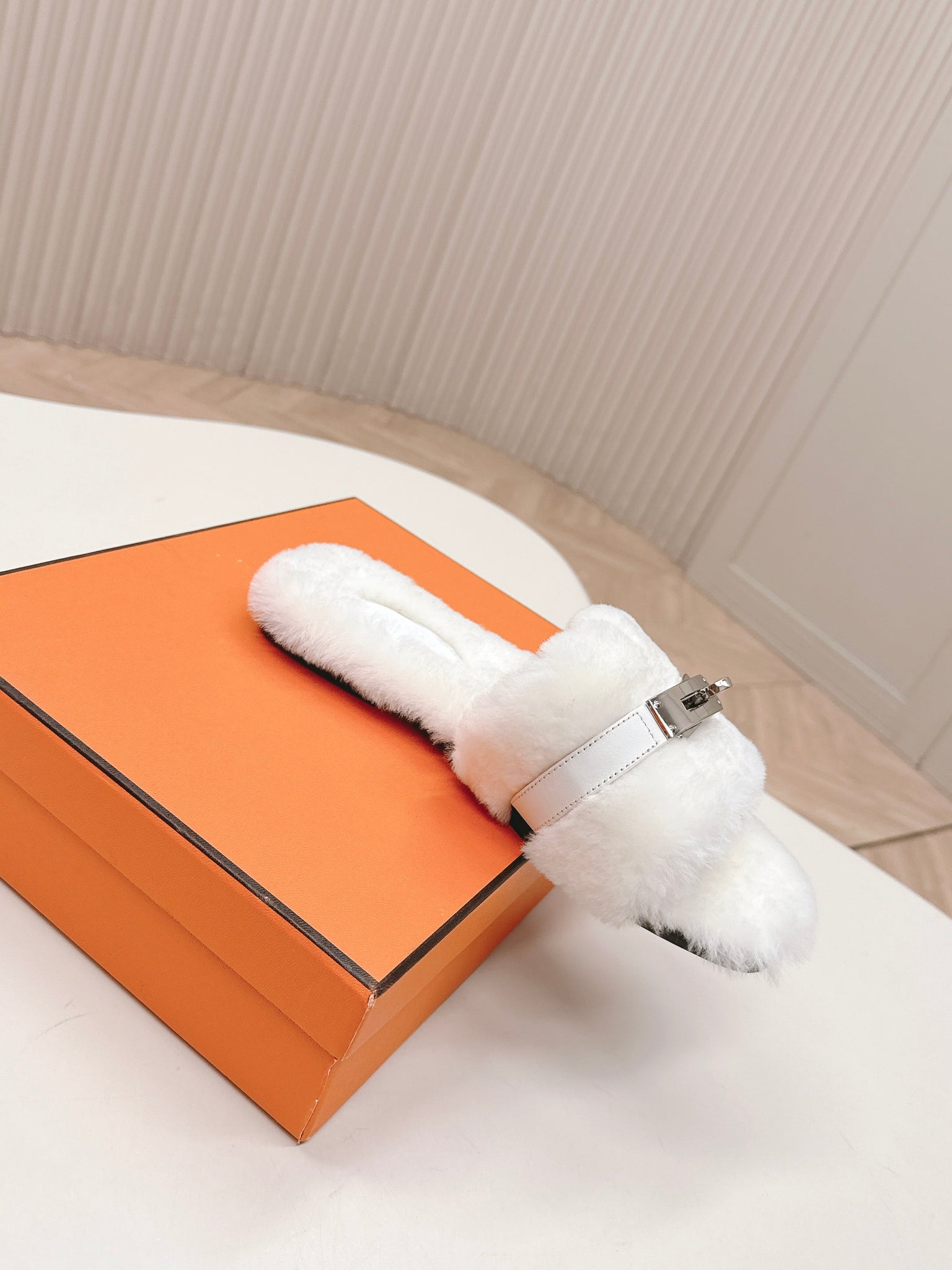 HM 25S ORAN SANDAL IN WHITE SHEARLING WITH SILVER HARDWARE