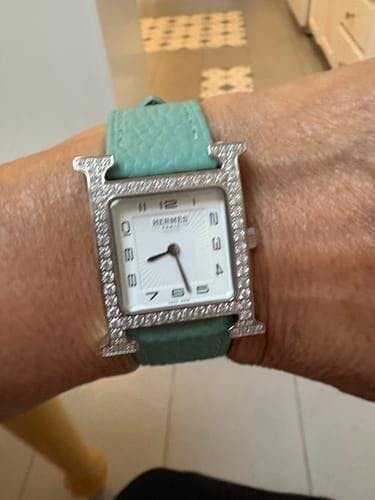 HM HEURE H 26 SILVER BLUE DIAL DIAMOND BEZEL EPSOM LEATHER