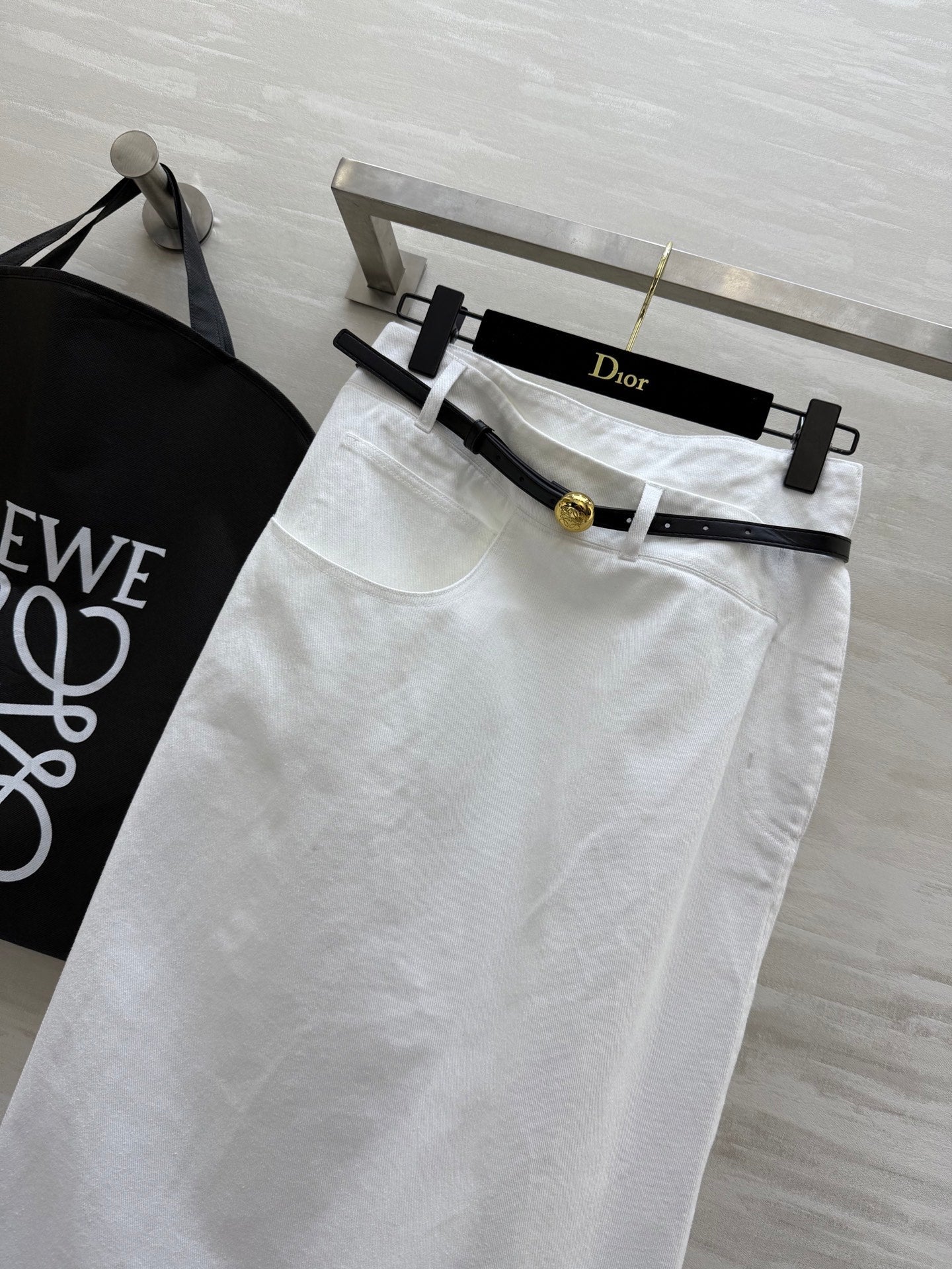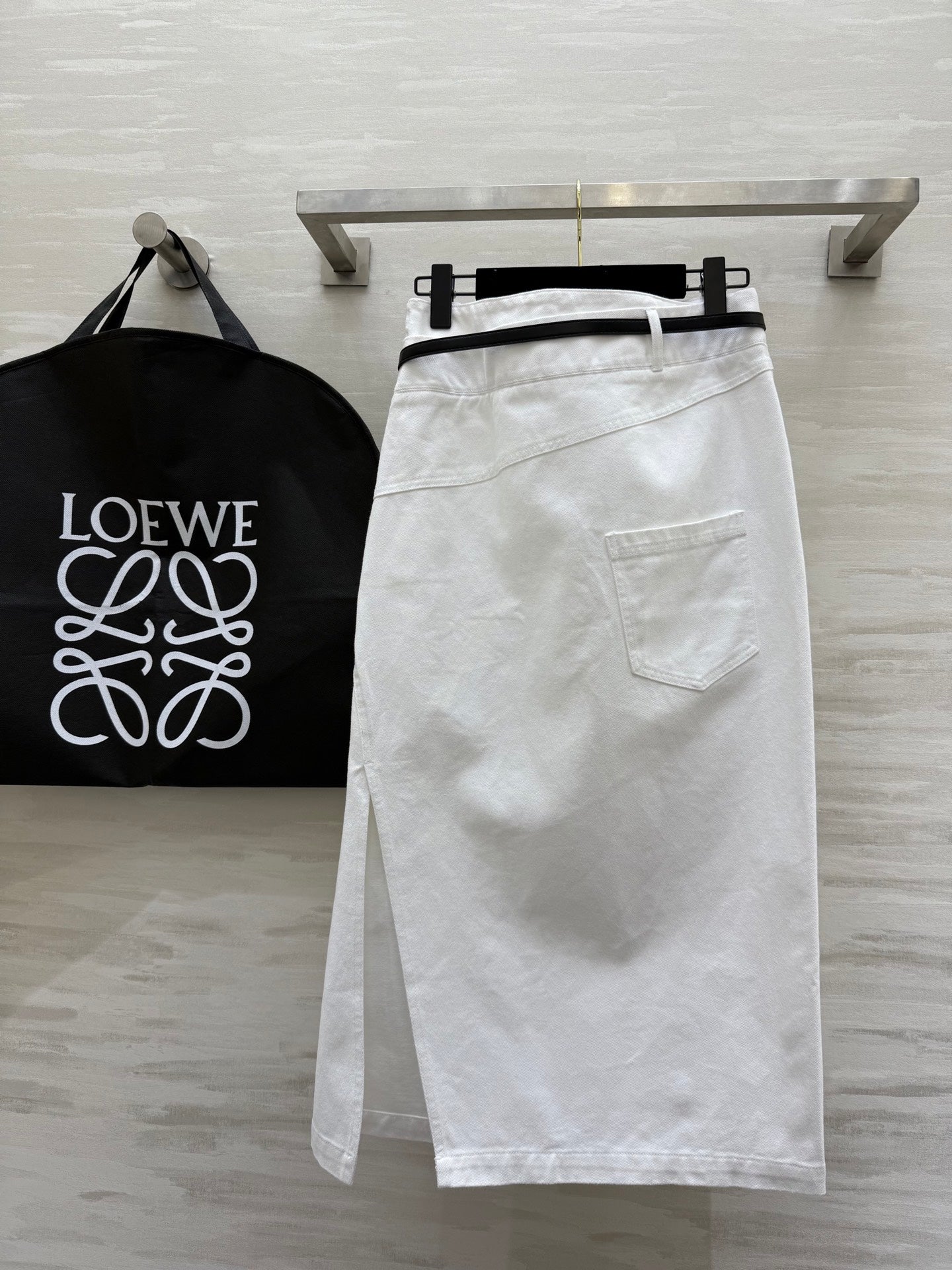 Loewe 25 Belt Skirt White Cotton