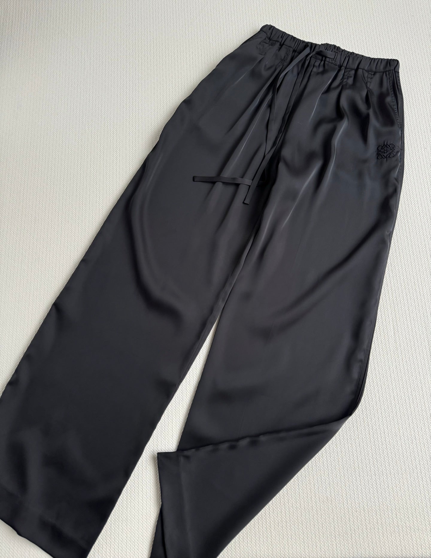 Loewe High Waisted Pants Black Satin Fabric