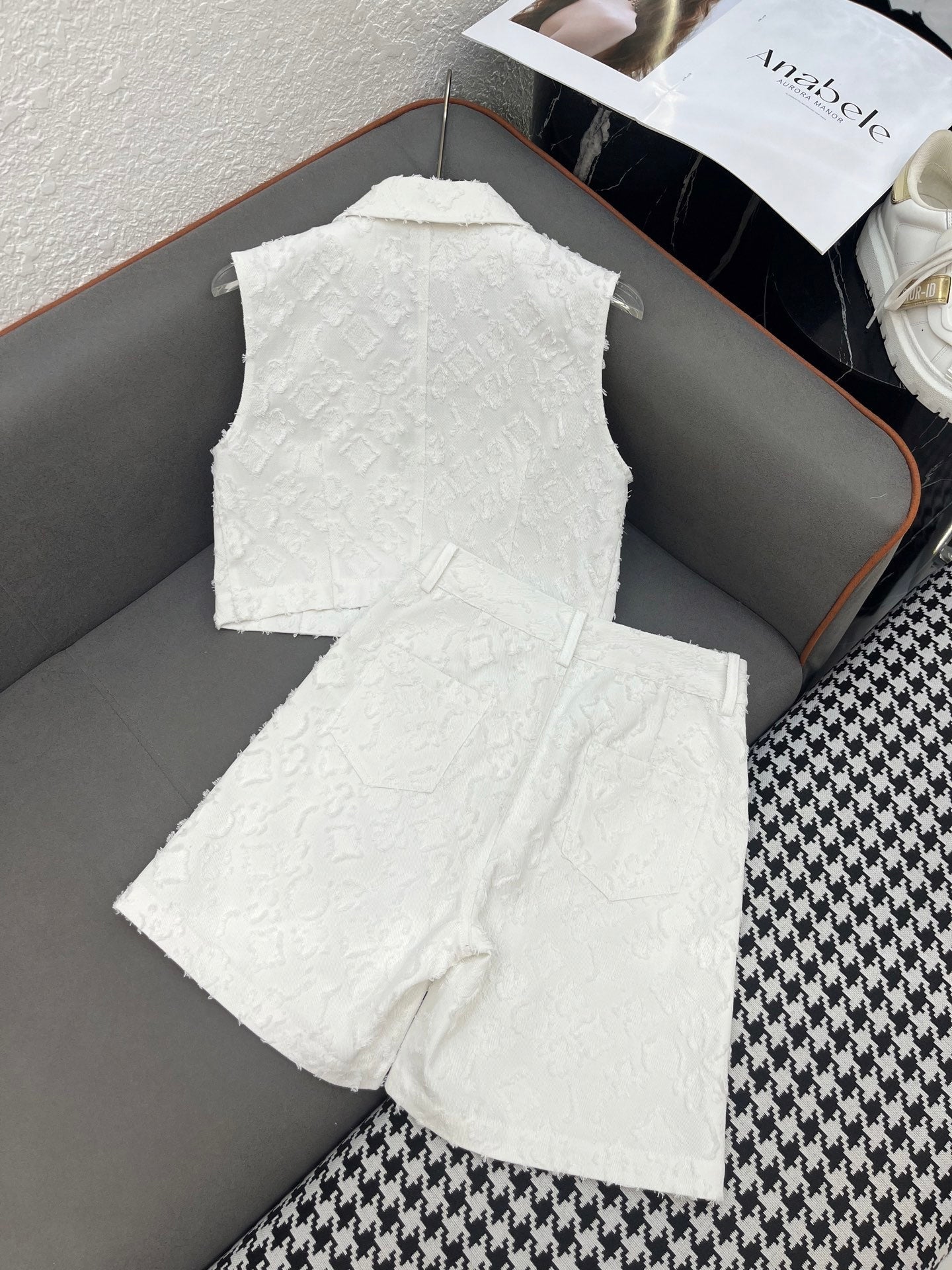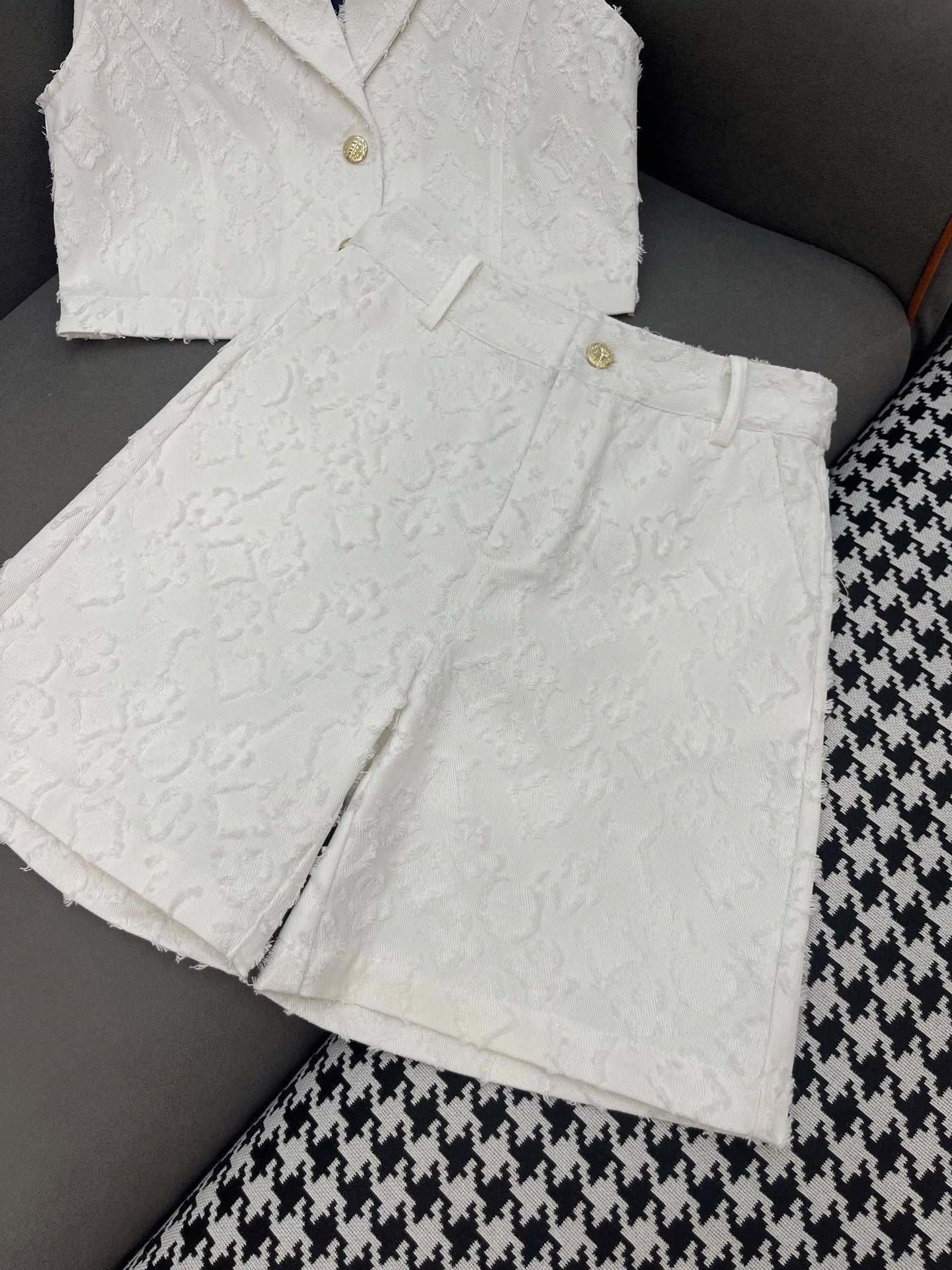 SET SLEEVELESS TOP AND SHORTS IN WHITE DENIM