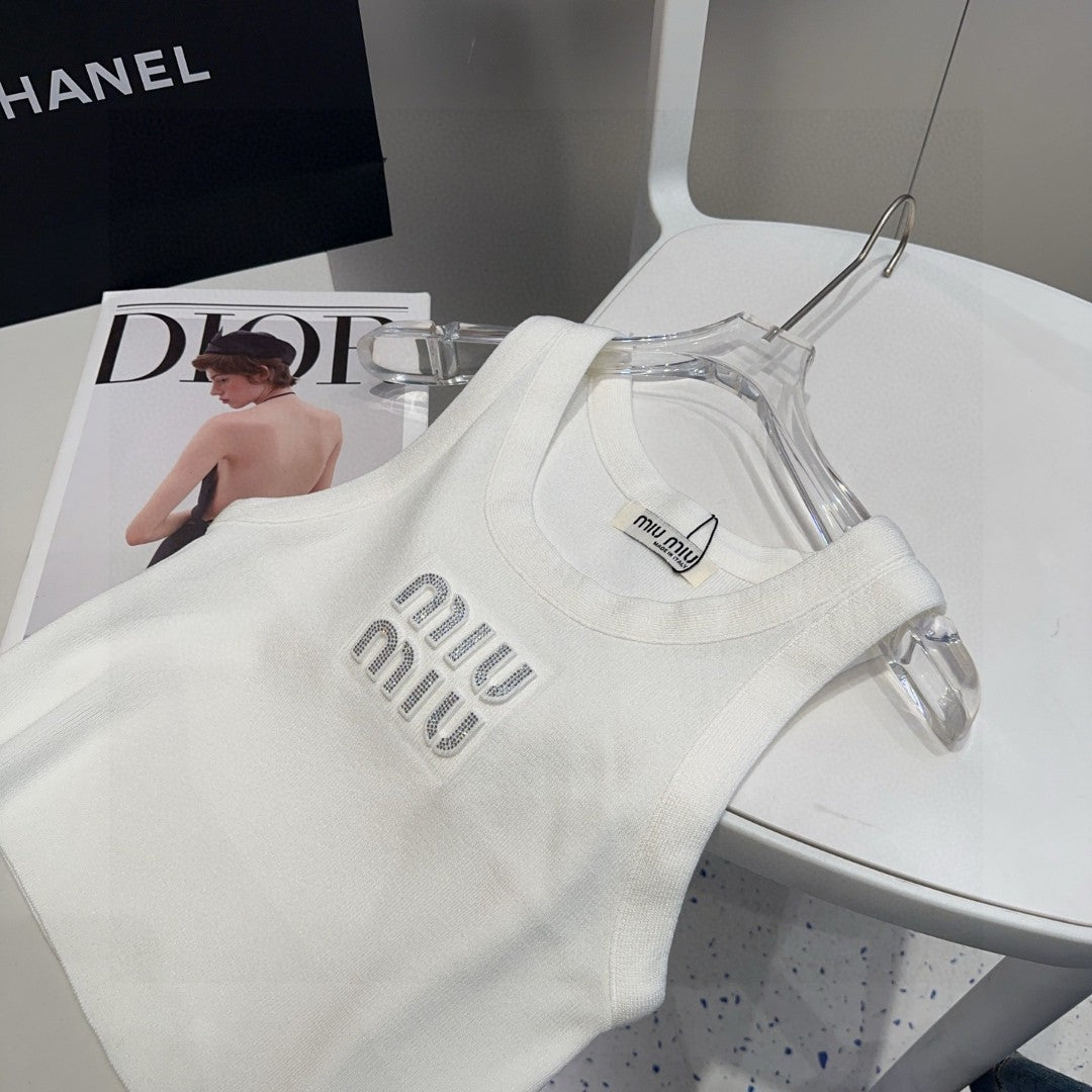 VISCOSE TANK TOP 643229 IN WHITE COTTON RIBBED KNIT WITH EMBELLISHED LOGO
