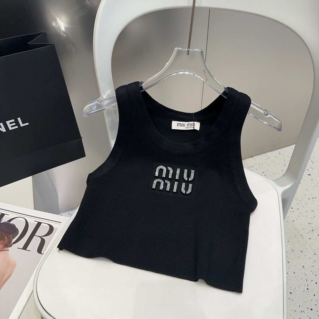 VISCOSE TANK TOP 643230 IN BLACK RIBBED KNIT WITH EMBELLISHED LOGO
