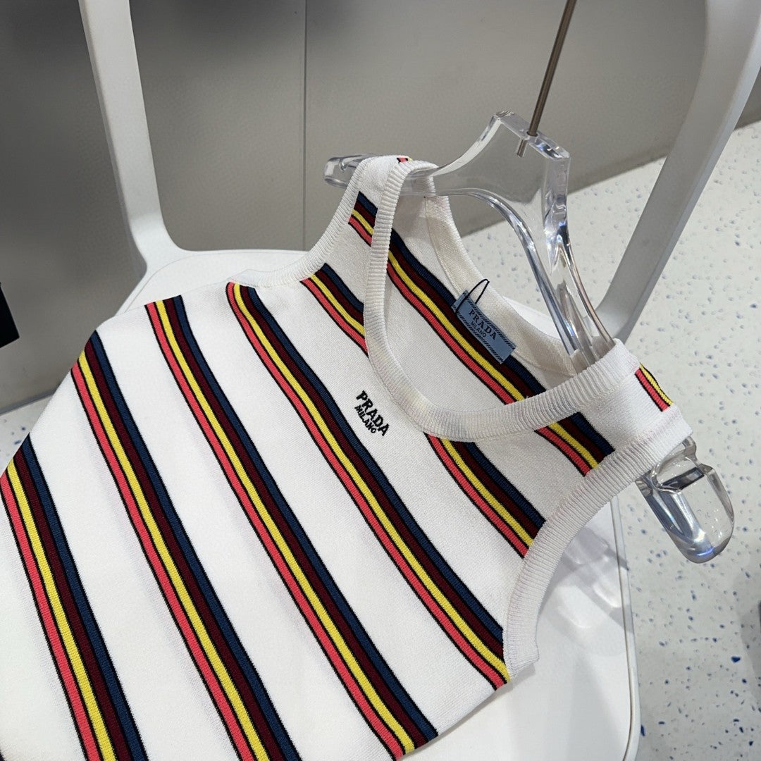 STRIPED TANK TOP 627700 IN WHITE MIX MULTICOLR COTTON RIBBED