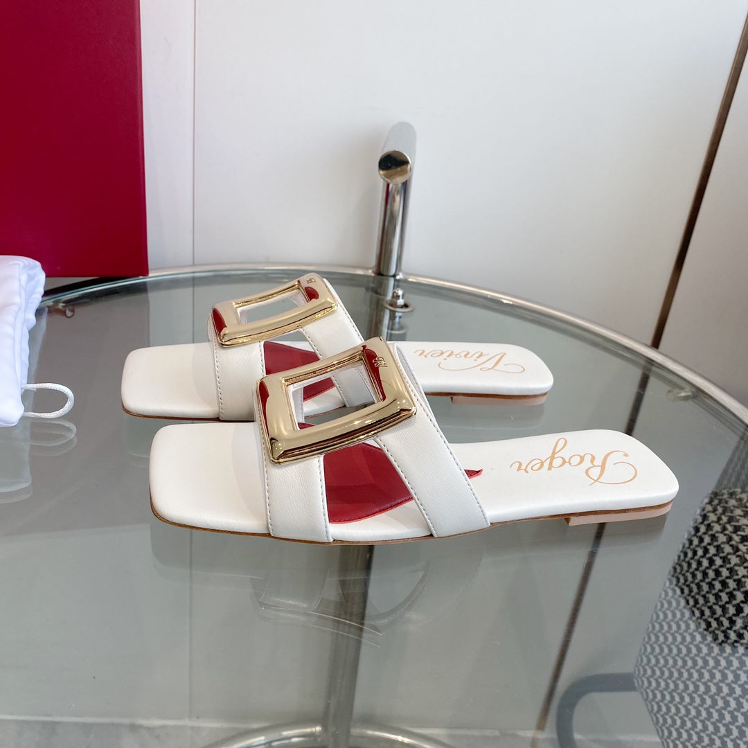 VIV' BY THE SEA LOVE METAL MULES IN WHITE CALFSKIN GOLD BUCKLE