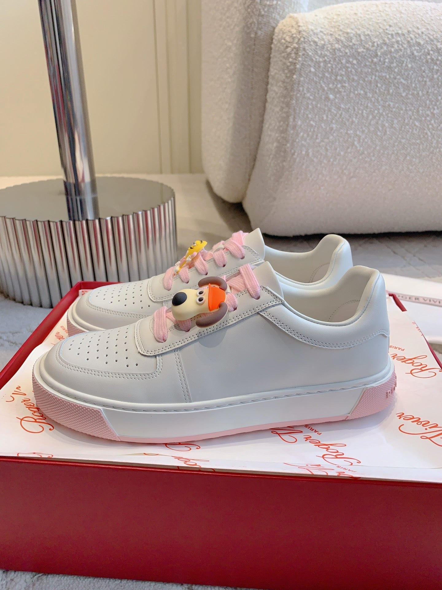 VIV' SKATE WHITE LEATHER SNEAKERS WITH PINK LACES AND CARTOON CHARMS