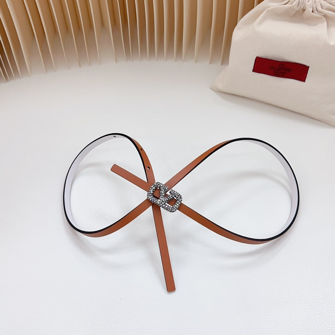 VL Belt 8mm Buckle Silver Diamond Leather Tan White