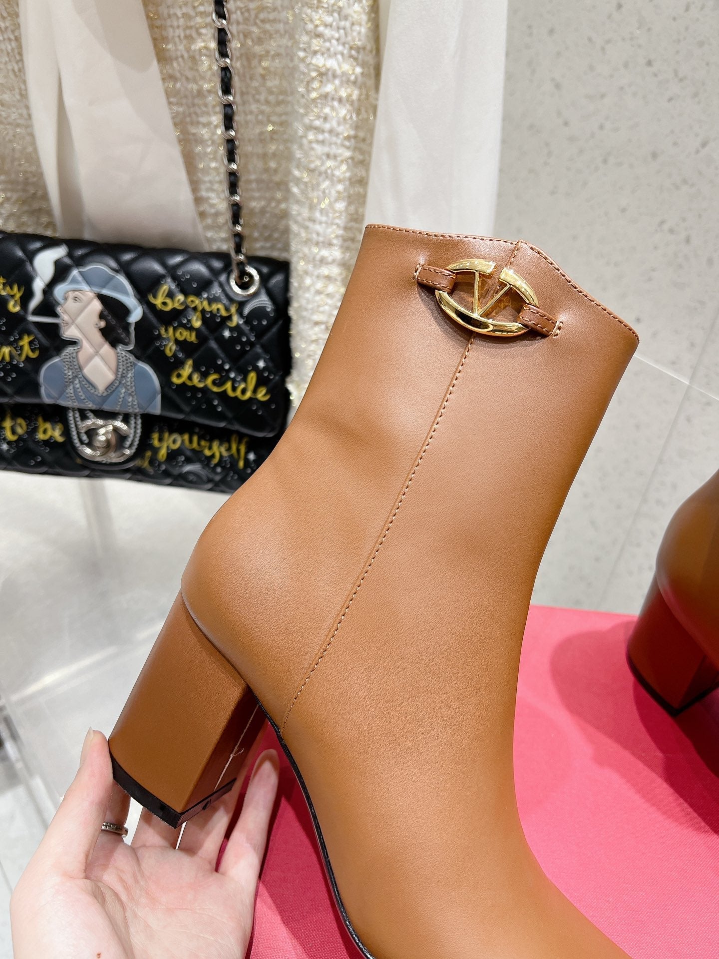 VLOGO SIGNATURE COPPER BROWN CALFSKIN ANKLE BOOT 75 MM