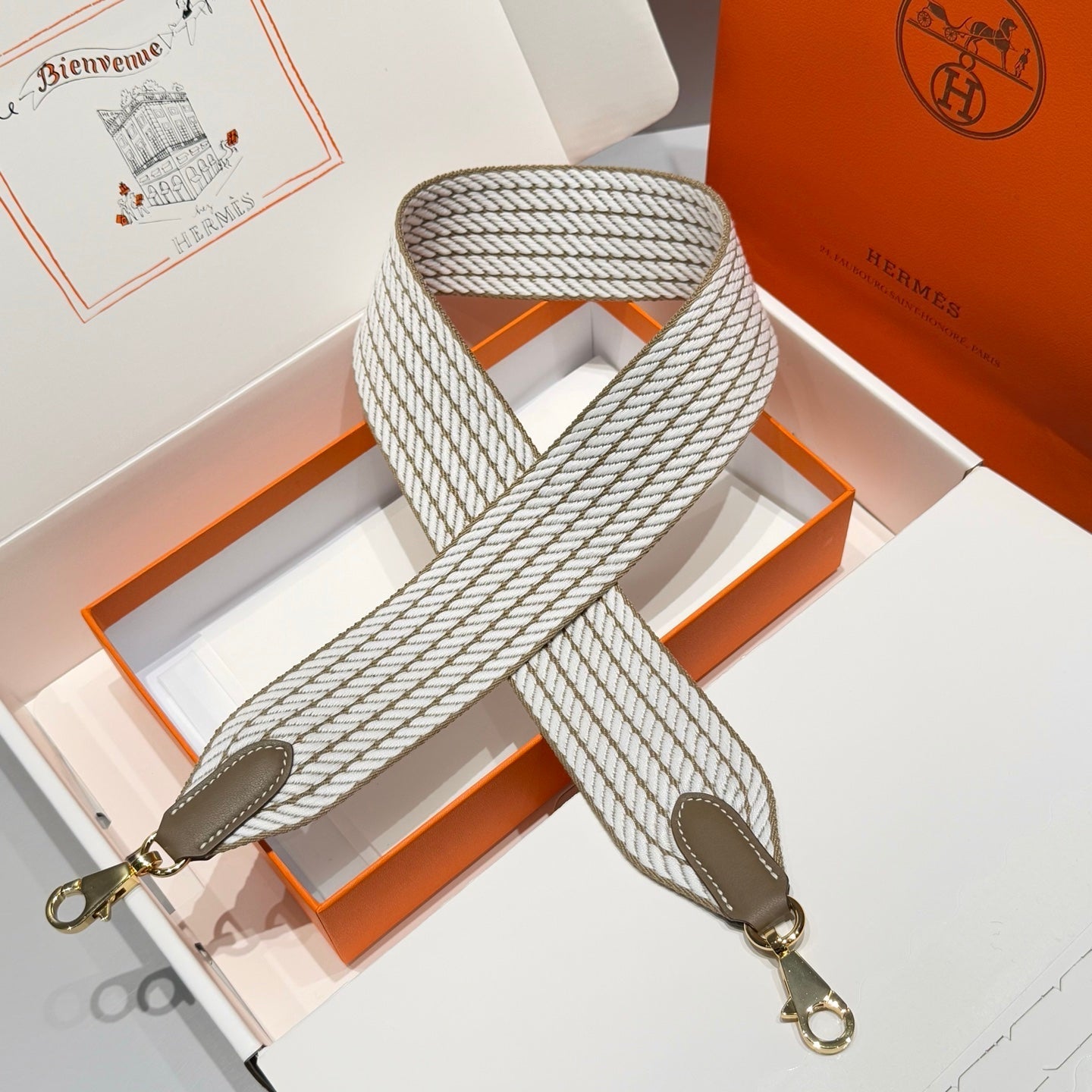 25S HERMES BAG STRAP BROWN AND WHITE PATTERN 85 IN CANVAS GOLD HARDWARE
