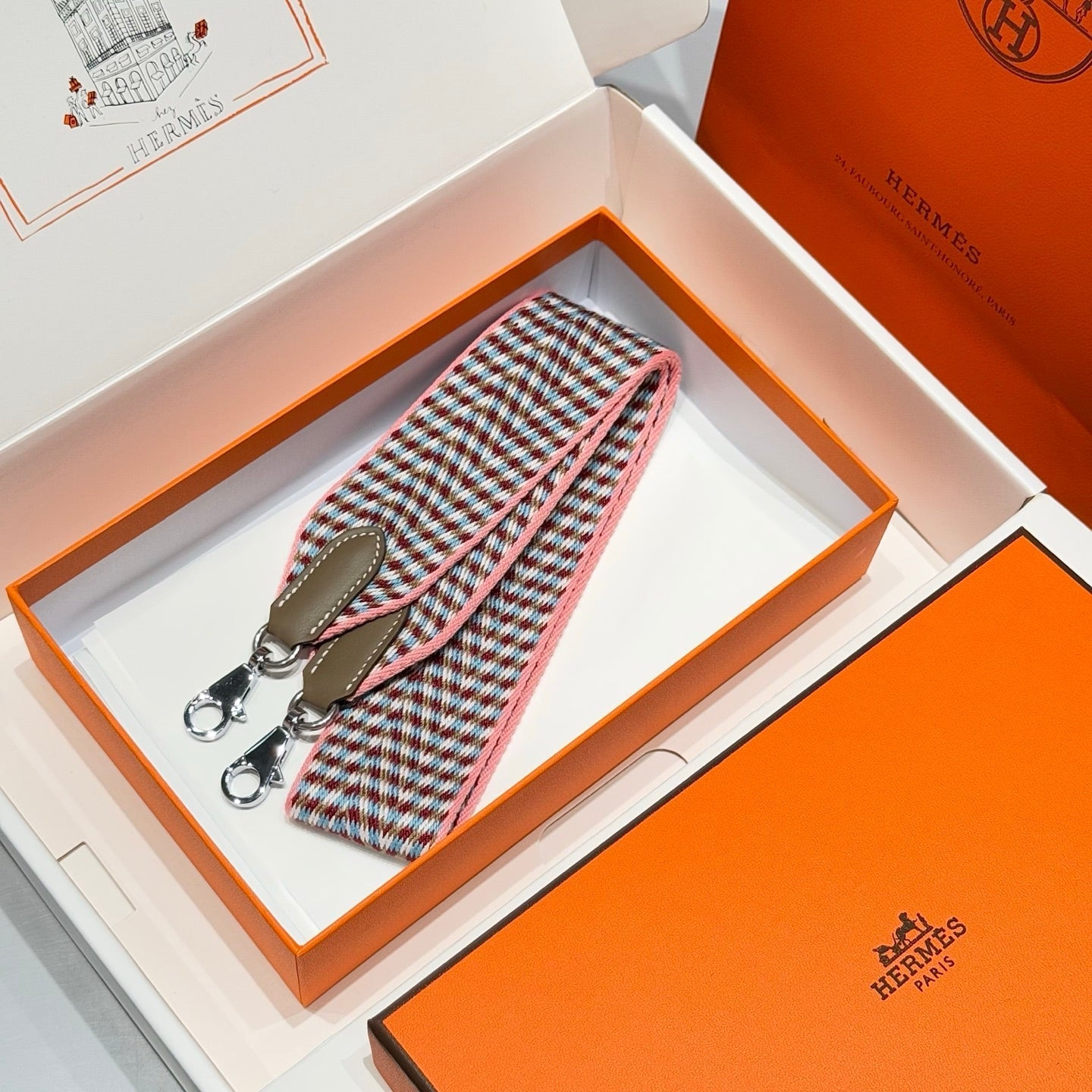 25S HERMES BAG STRAP GREEN AND PINK PATTERN 85 IN CANVAS SILVER HARDWARE