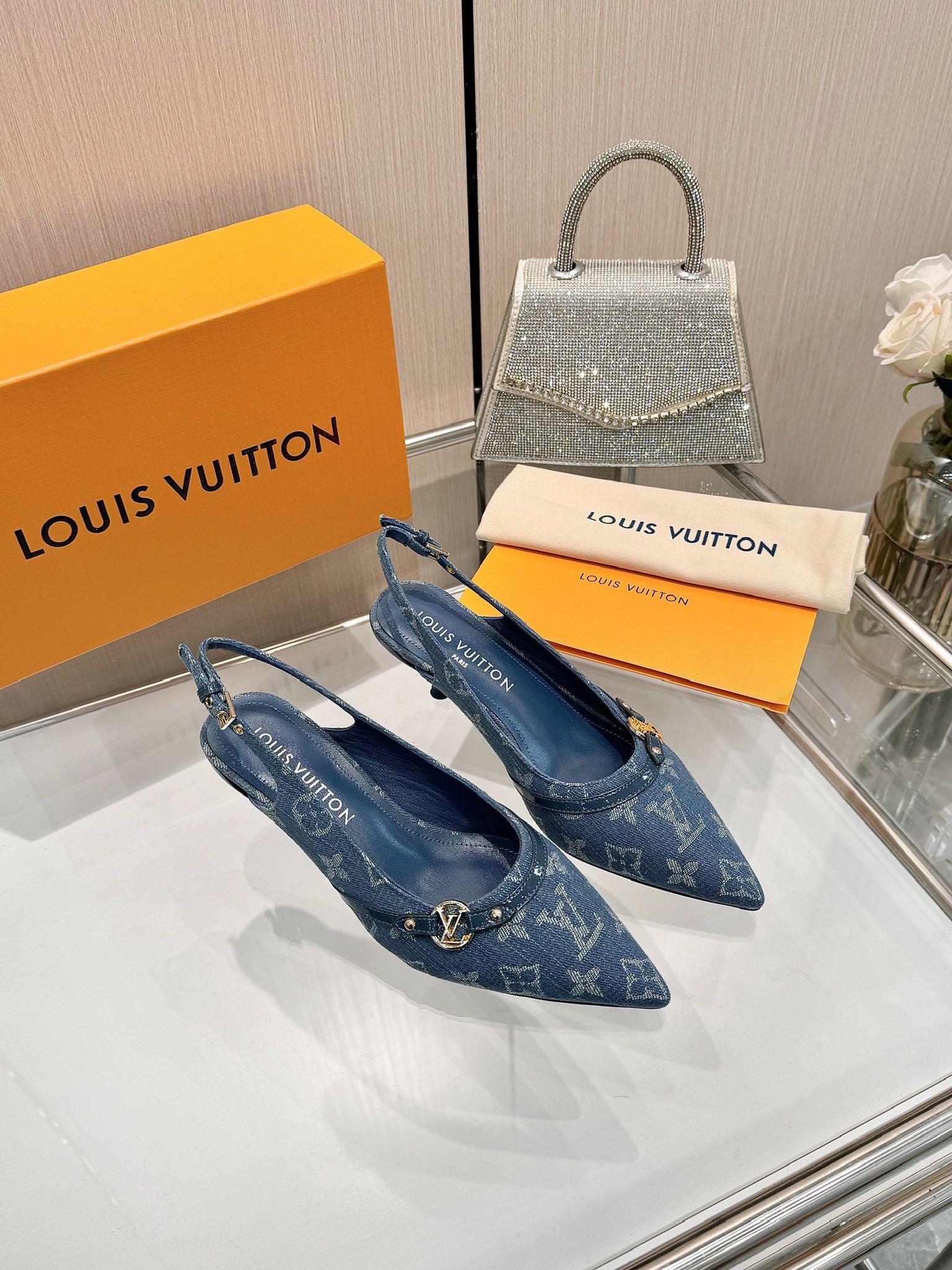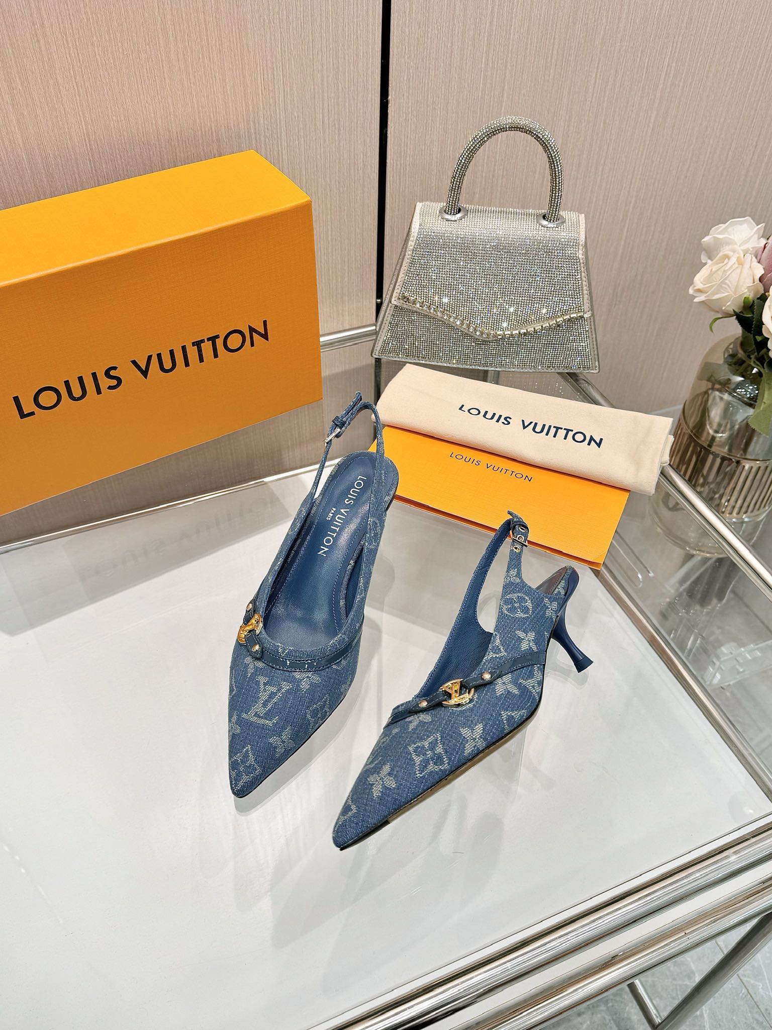 6AM SLINGBACK HIGH HEELS 55 MM IN CLASSIC BLUE MONOGRAM DENIM