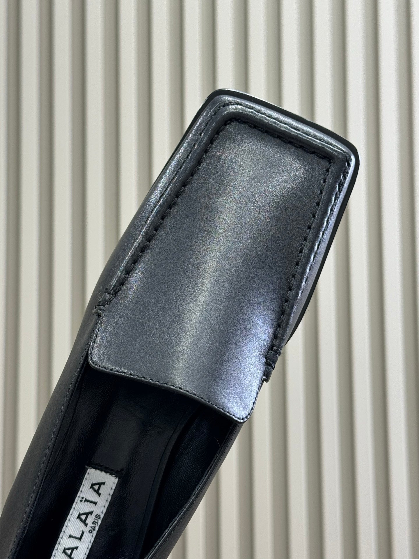 ALAIA 25S SQUARE TOE LOAFER IN BLACK CALFSKIN