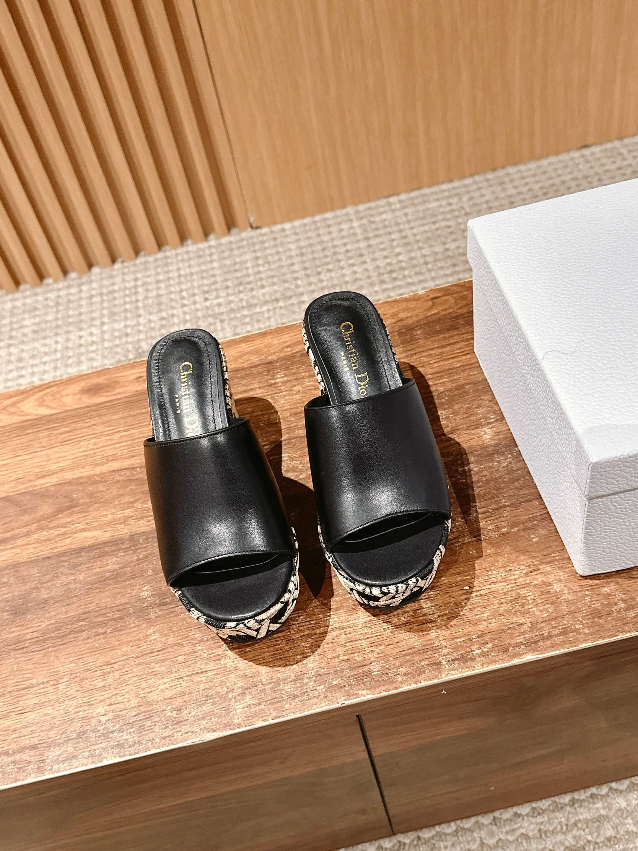 ATTITUDE WEDGE SLIDE 90MM IN BLACK CALFSKIN CANVAS SOLE