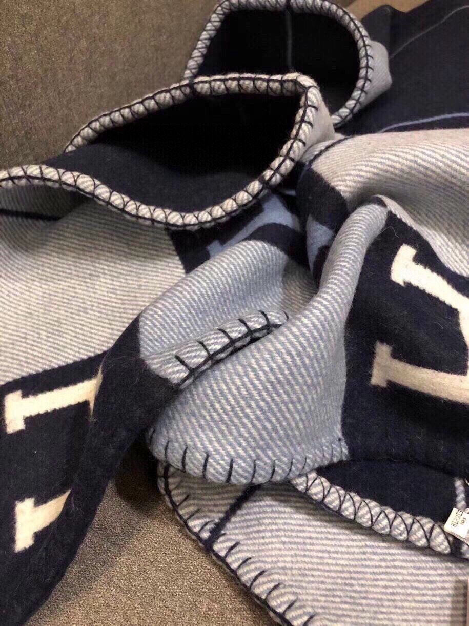 AVALON III THROW BLANKET 175 CM IN NAVY BLUE WOOL AND CASHMERE 351741