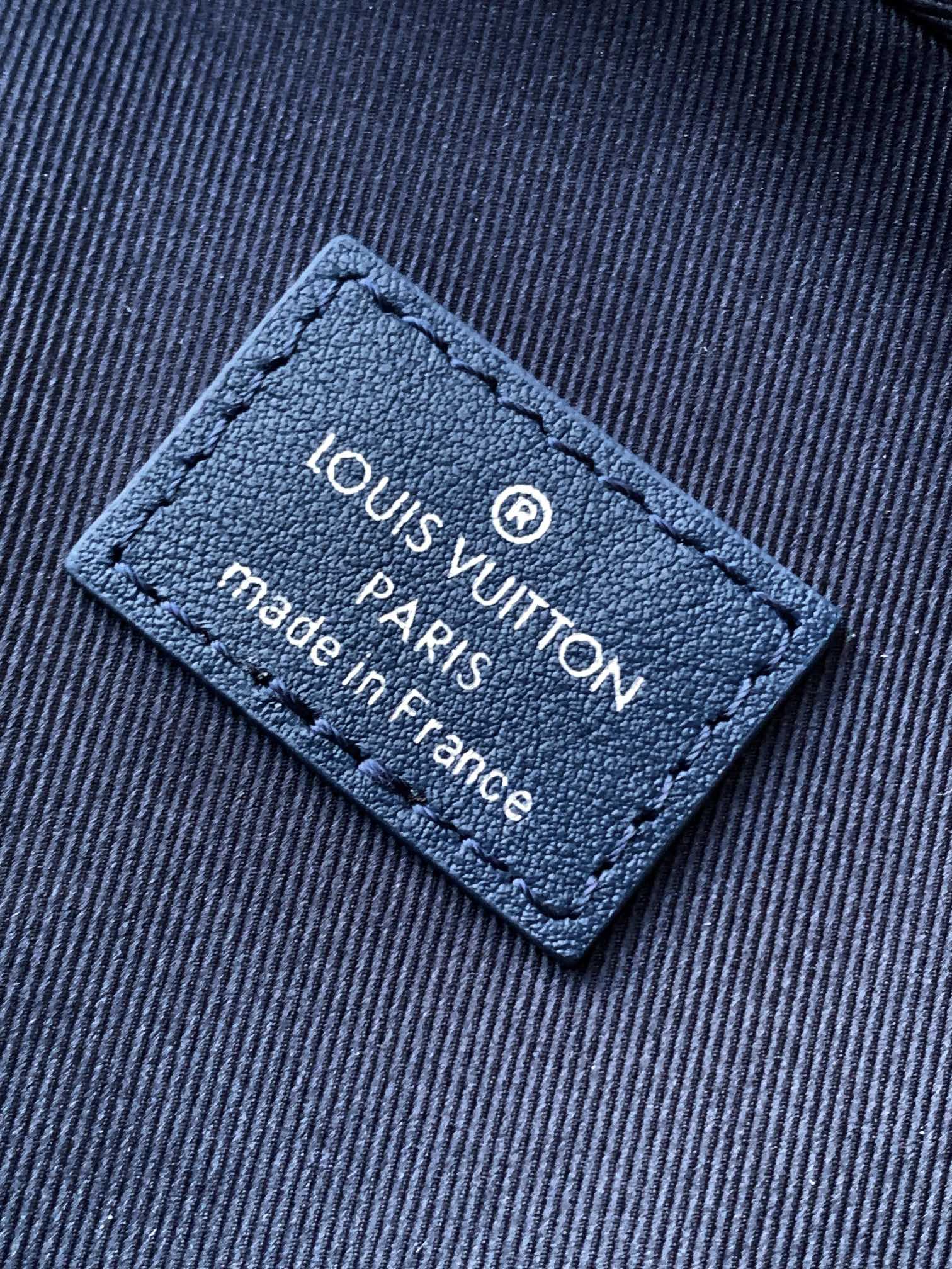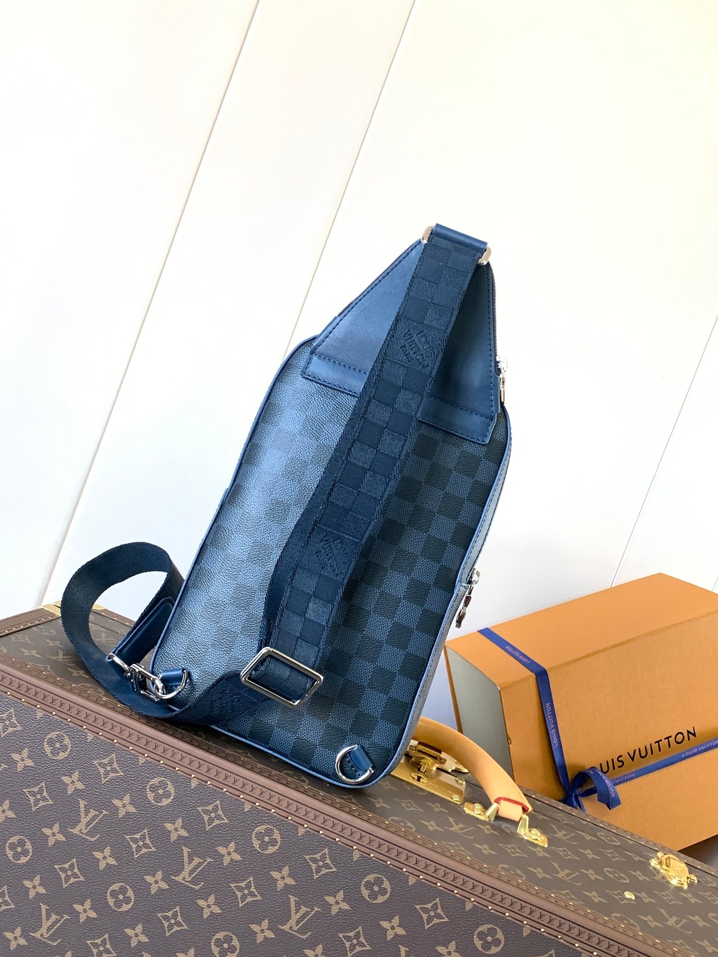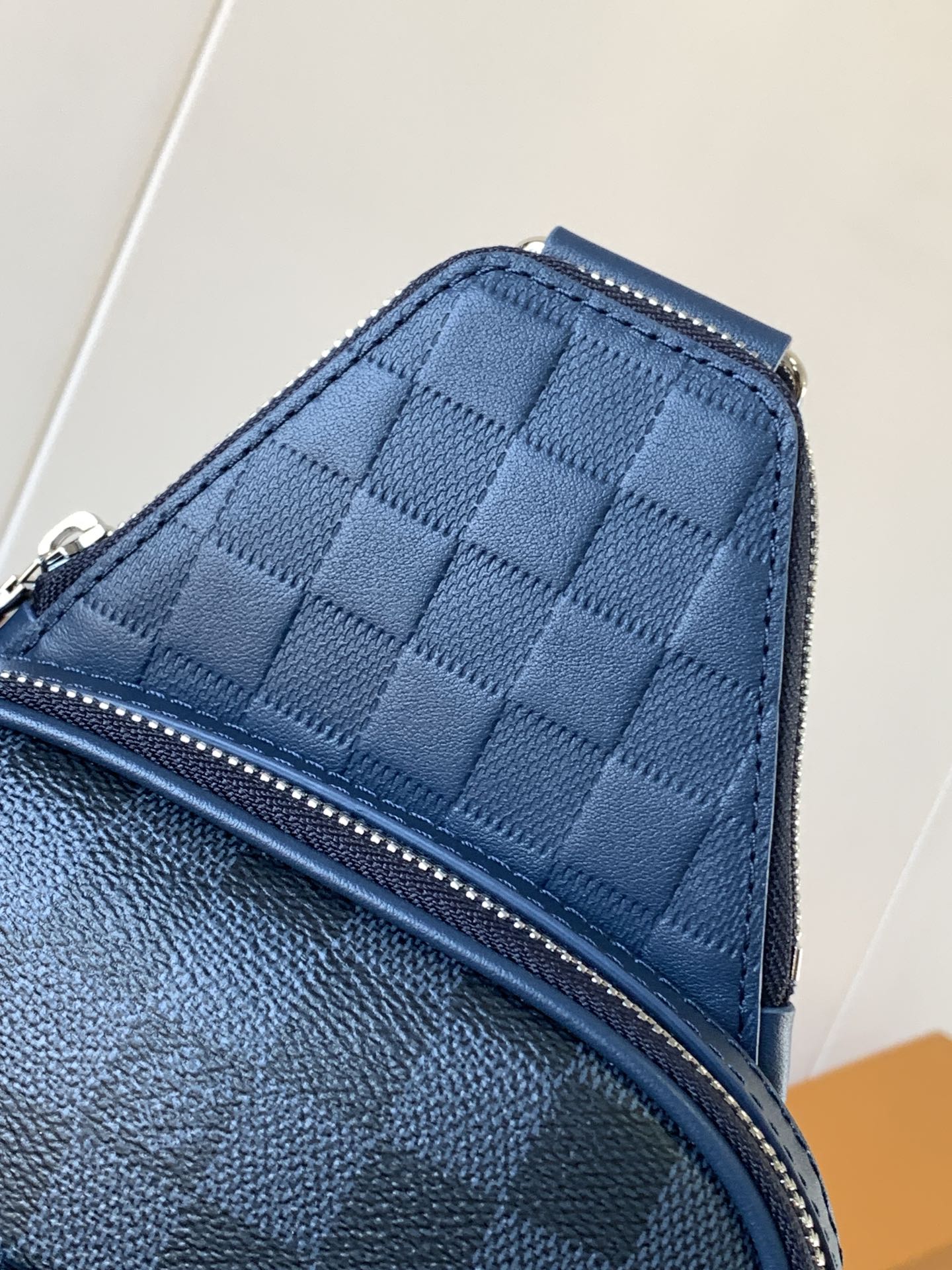 AVENUE SLINGBAG 31 IN NAVY BLUE TAIGA LEATHER WITH WHITE LOGO PRINTED