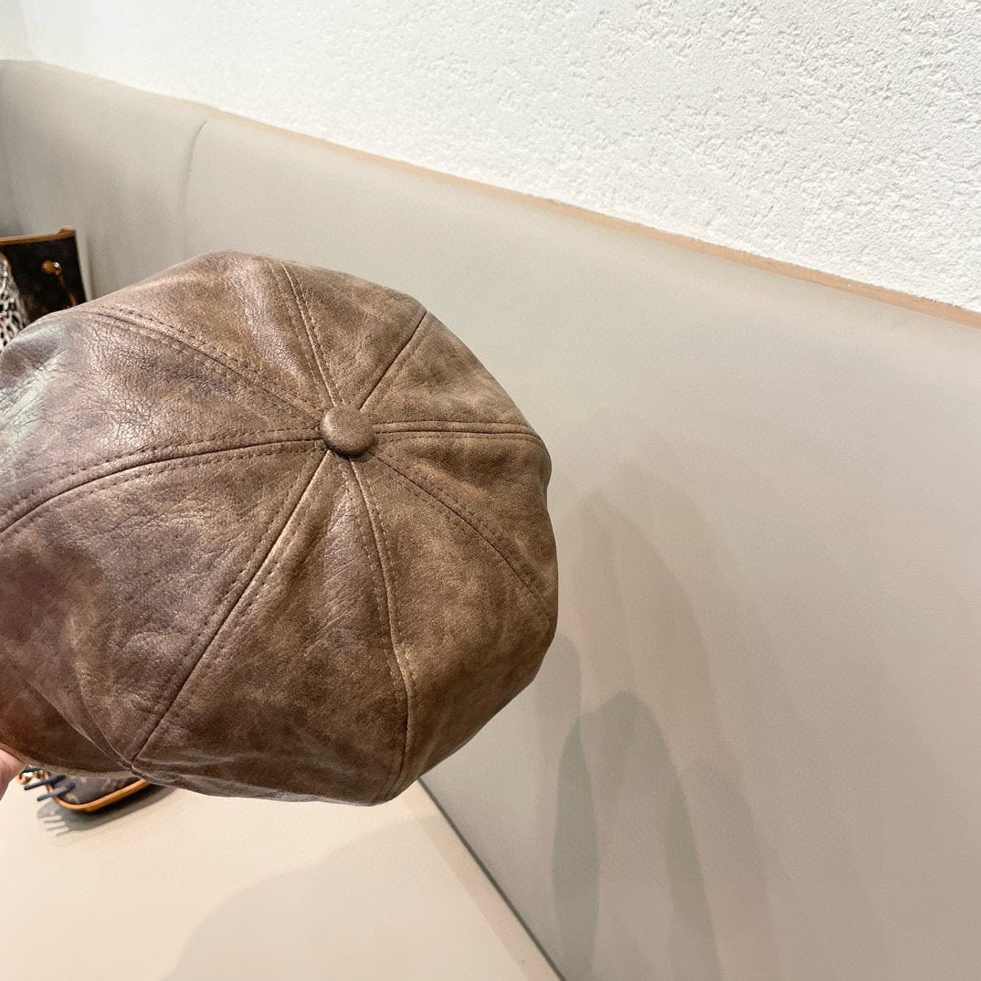 BAKER BOY HAT IN BROWN LEATHER 436762