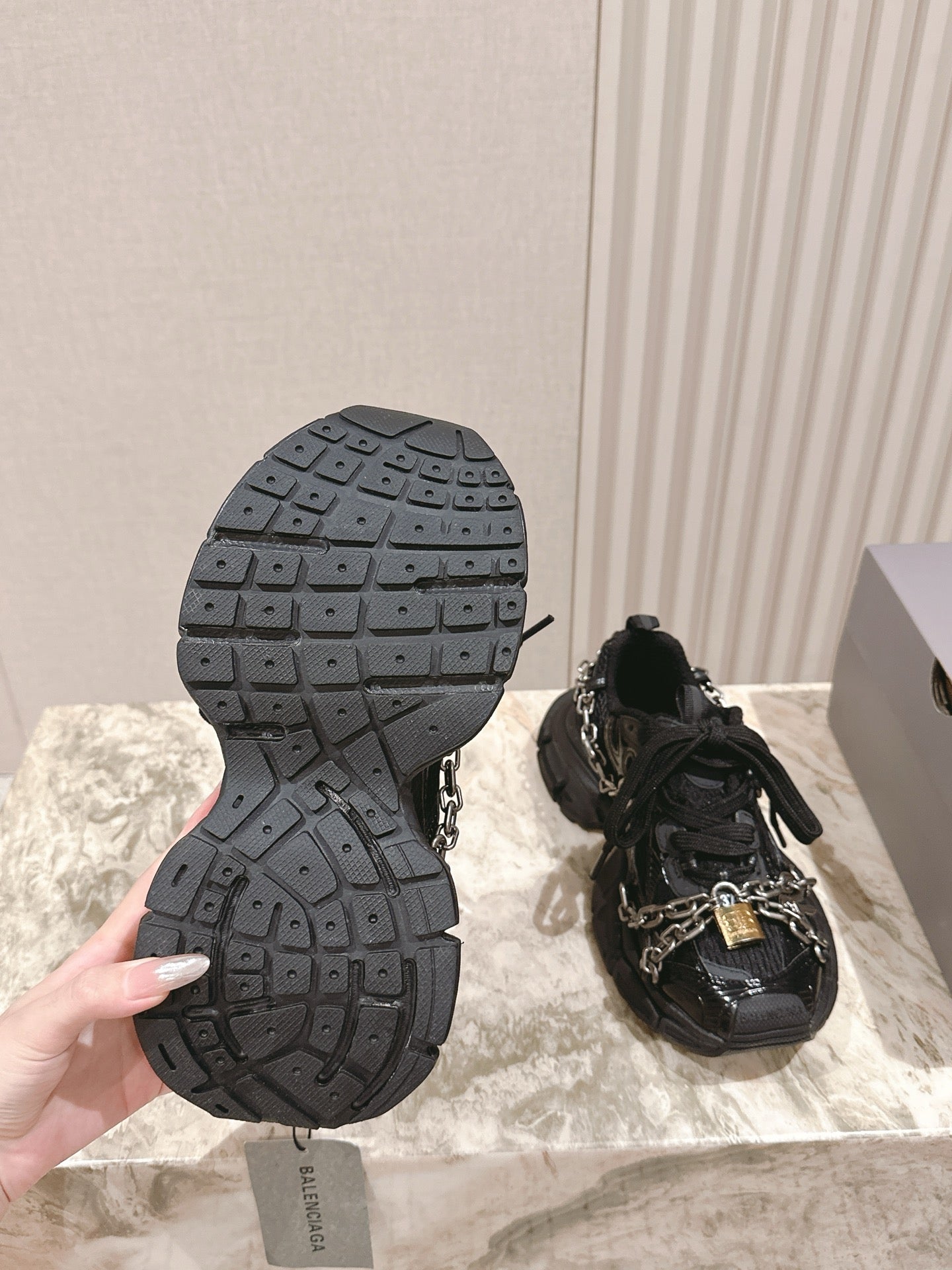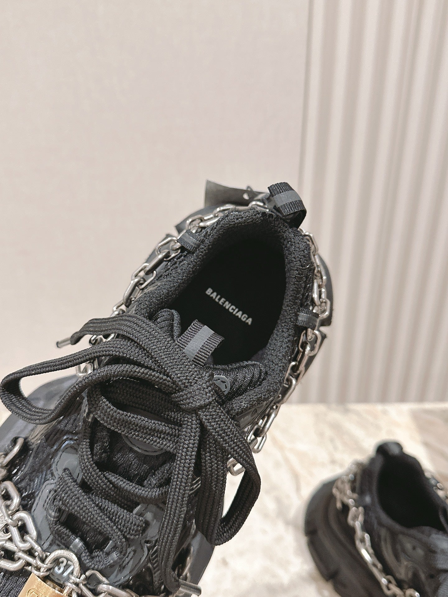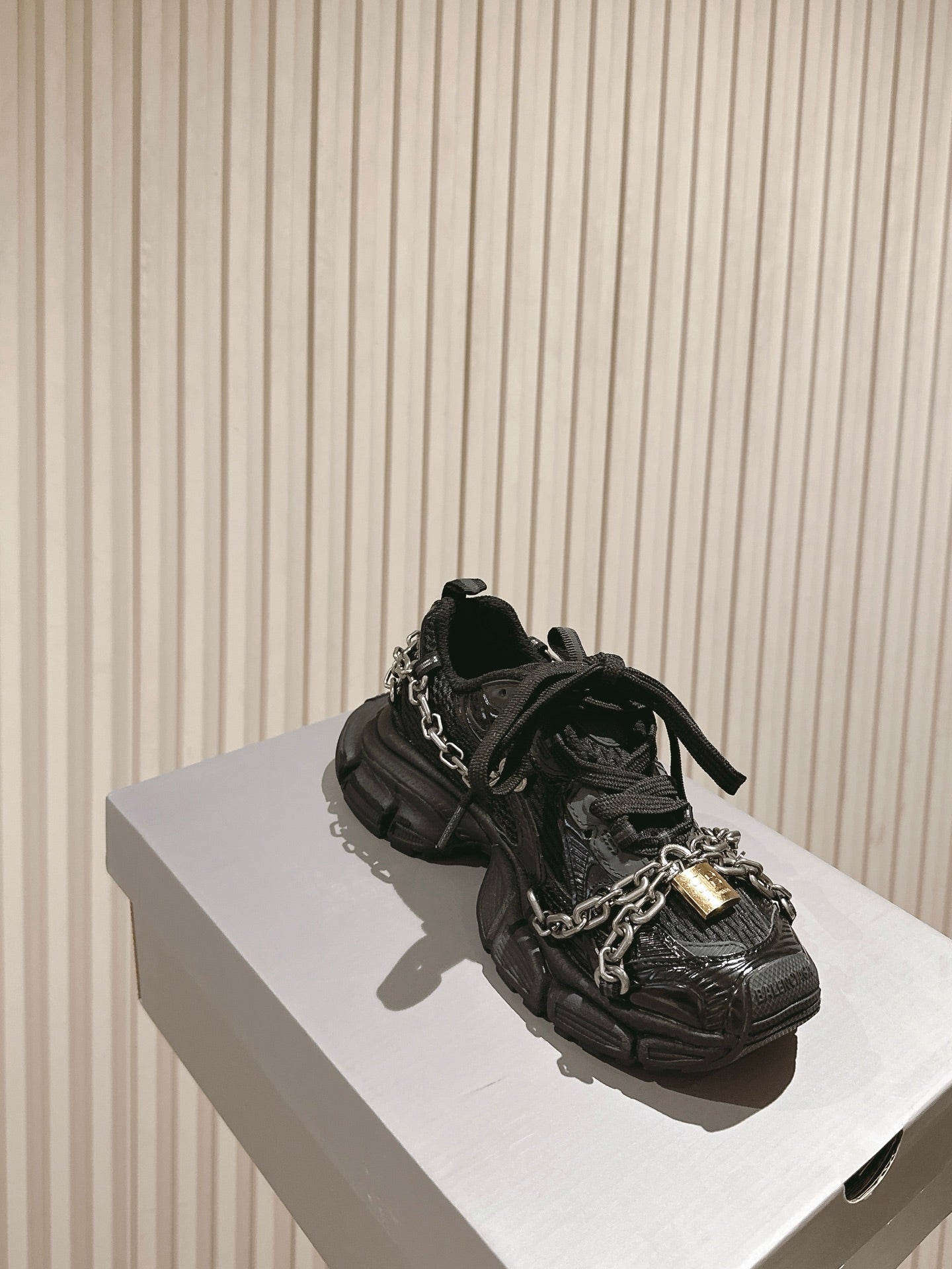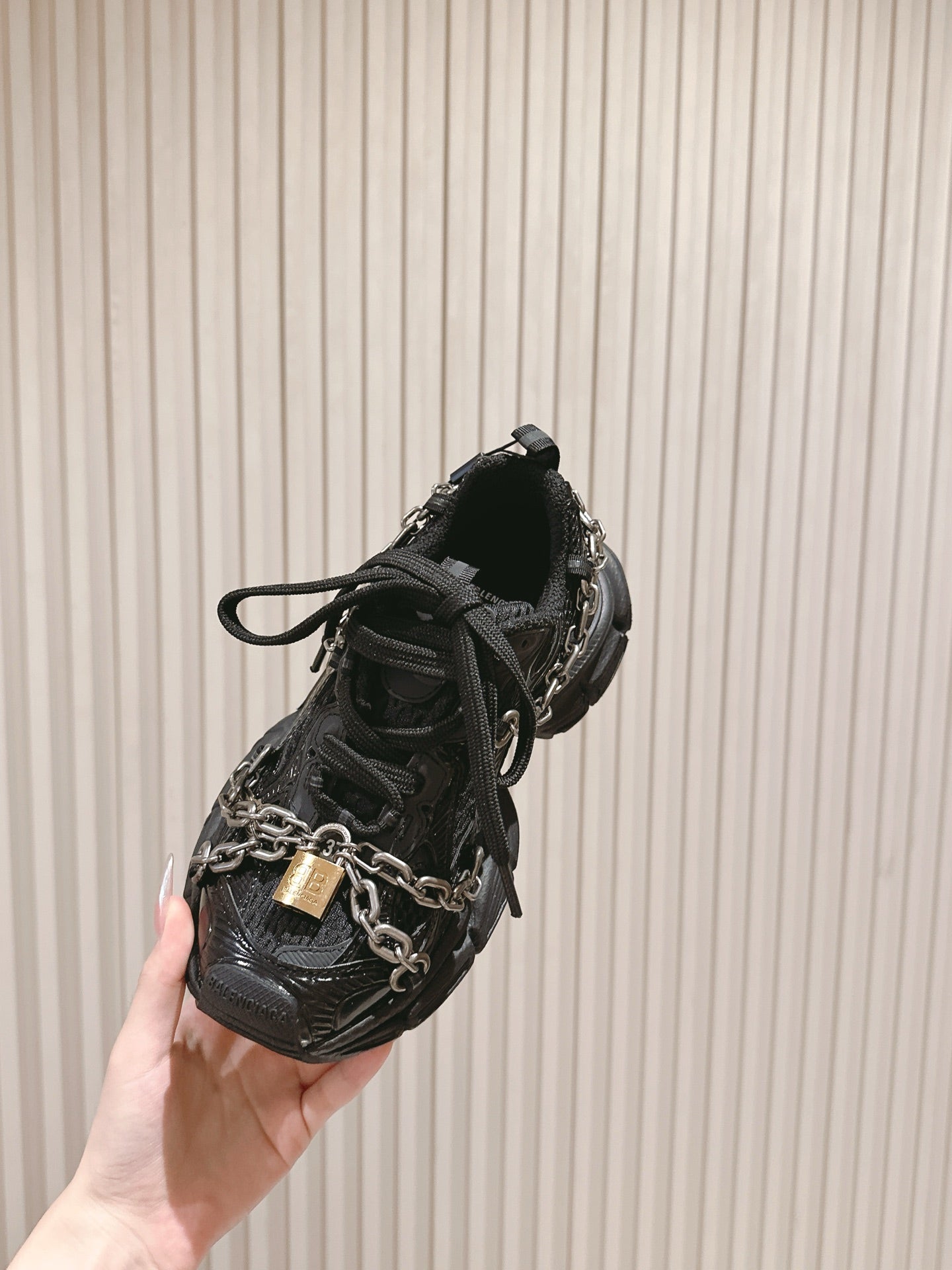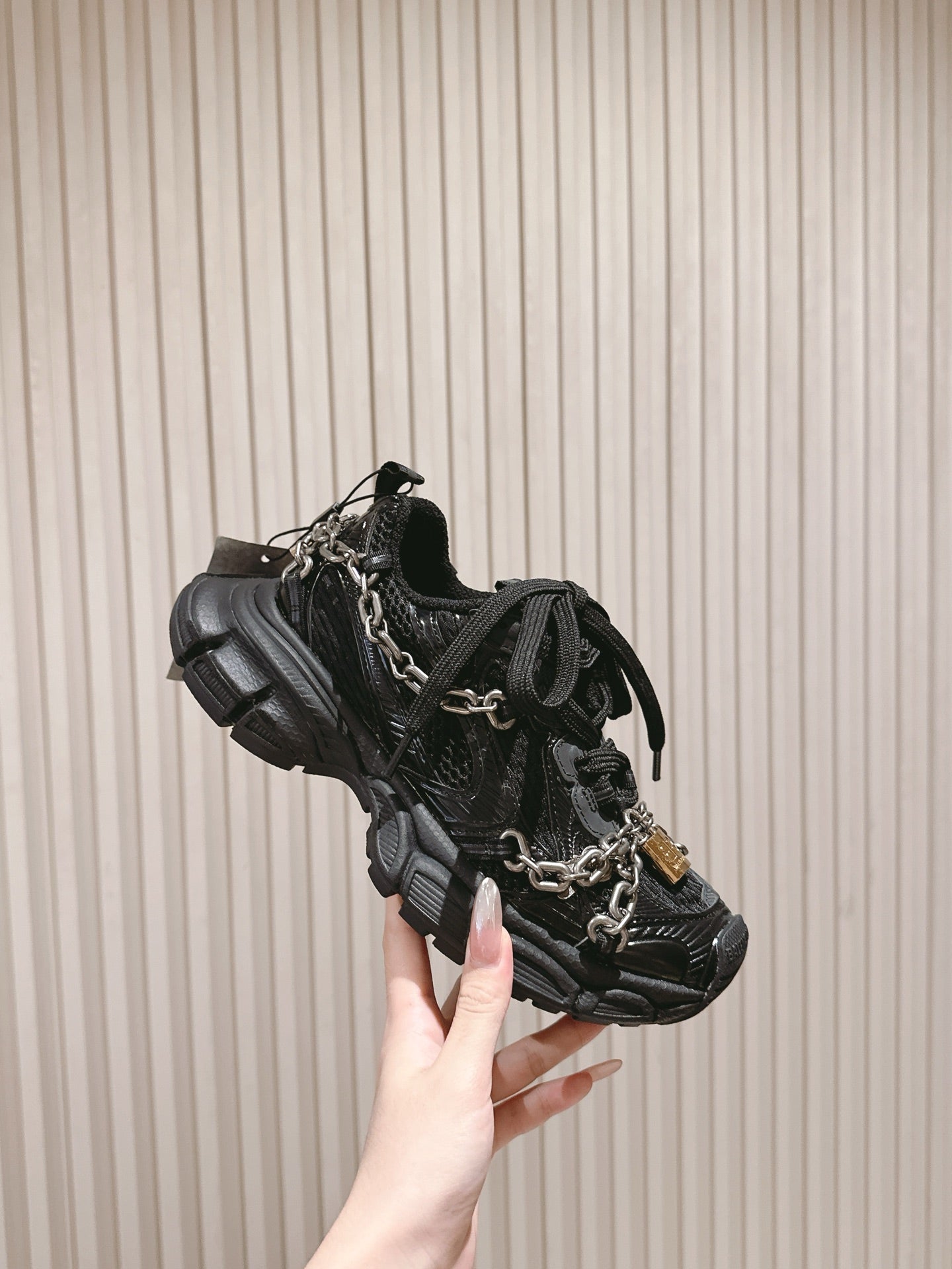 BALENCIAGA 25S 3XL SNEAKERS CHAIN-PADLOCK IN BLACK MESH FABRIC AND PU