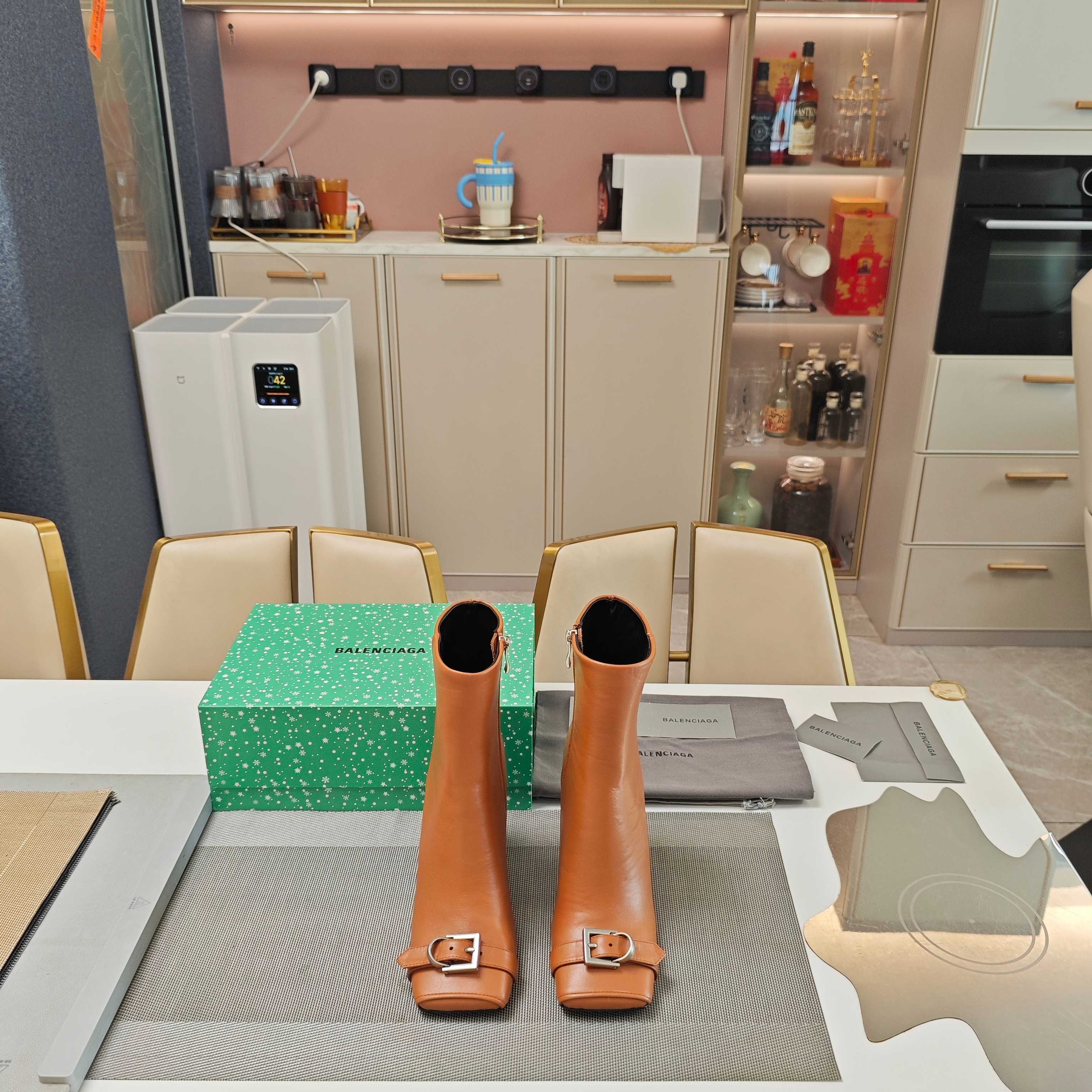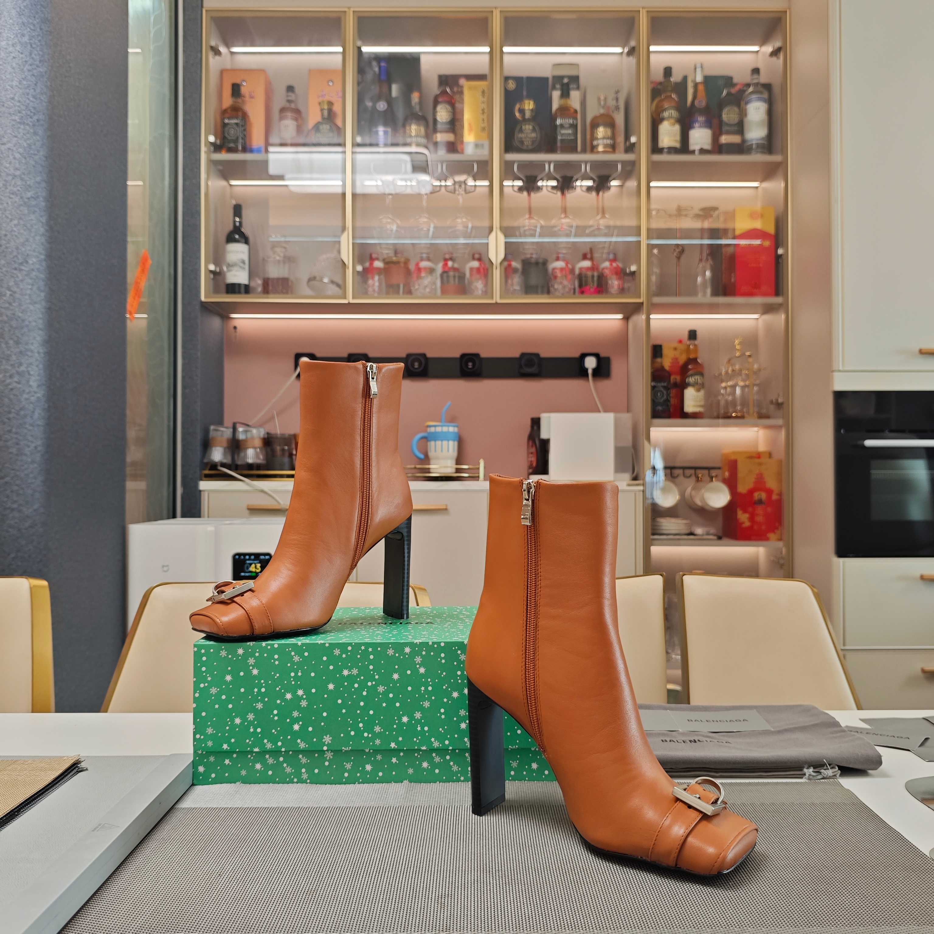 BALENCIAGA 25S BEL AIR BOOTS 115 MM IN DARK ORANGE CALFSKIN WITH SILVER HARDWARE