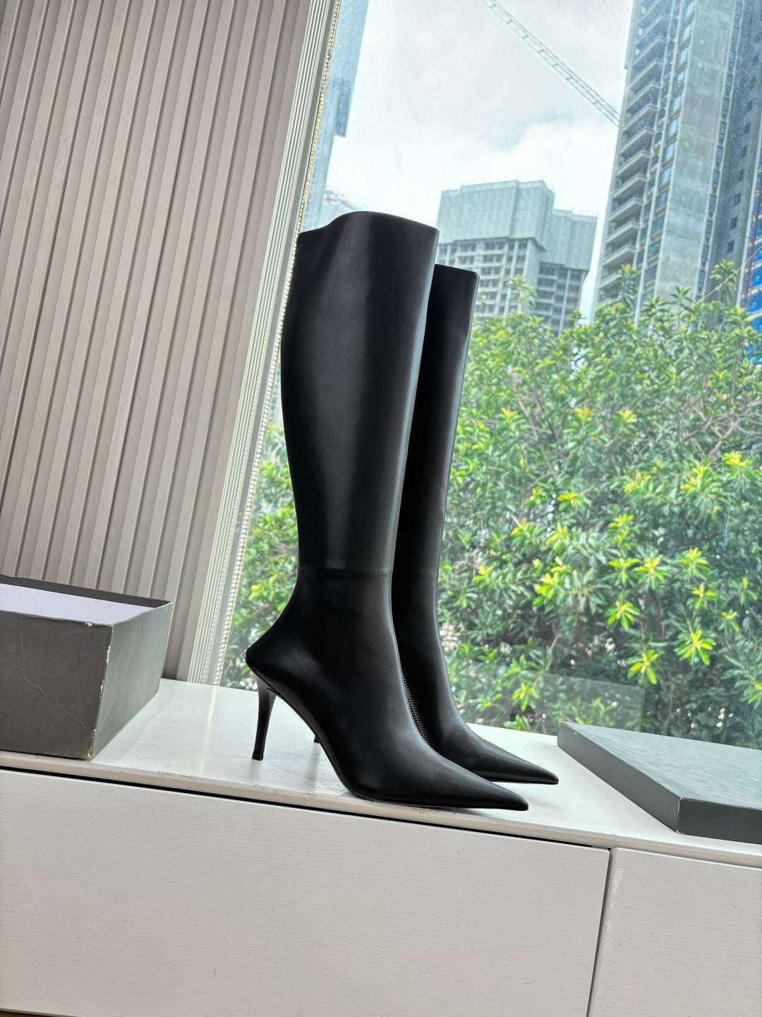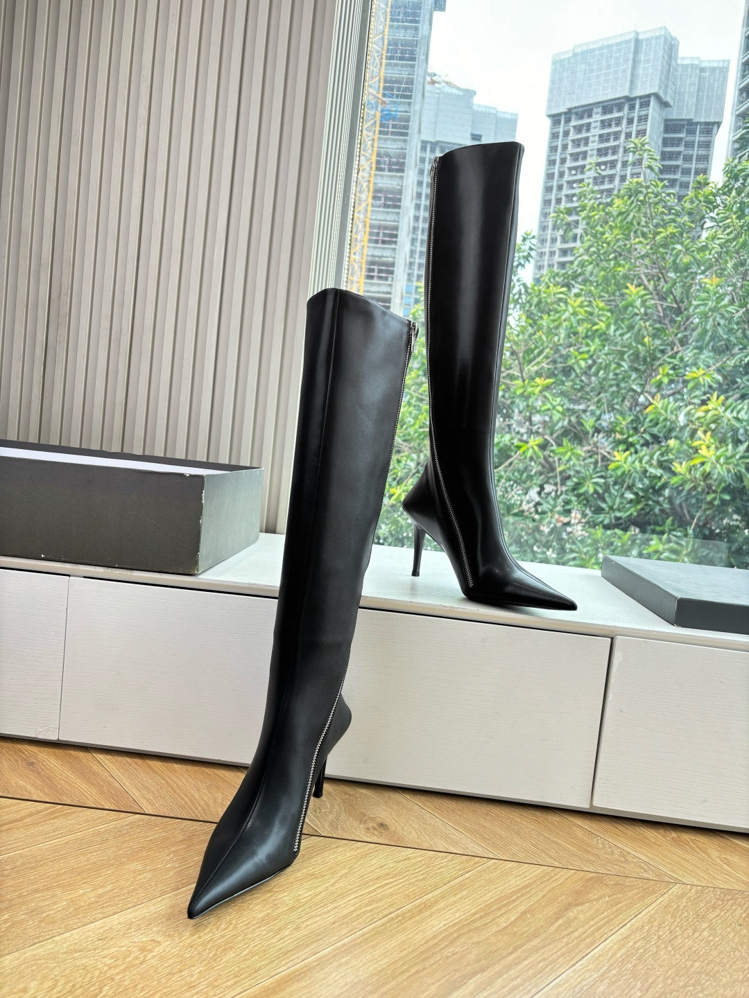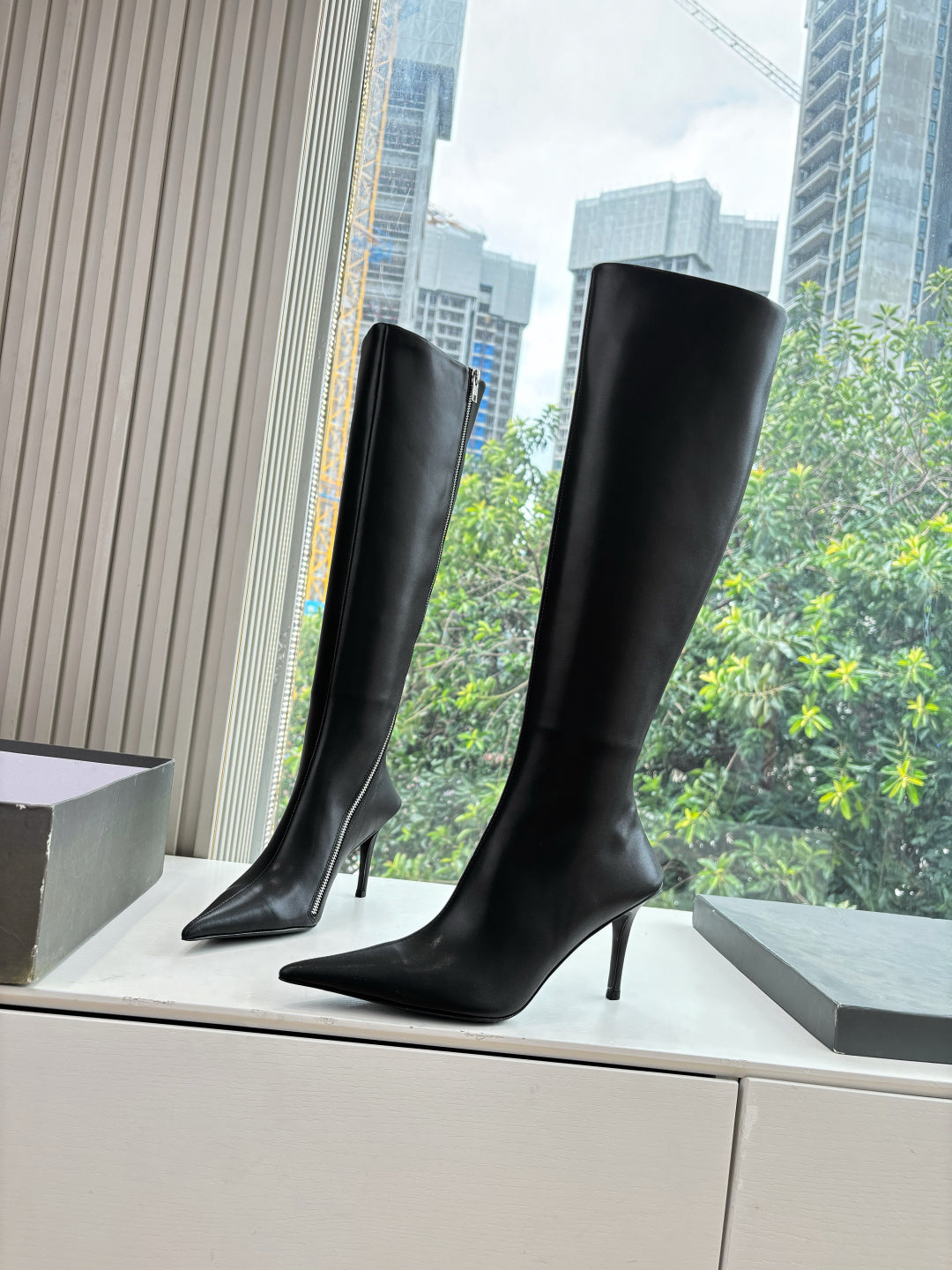 BALENCIAGA 25S HIGH BOOTS WITH ZIPPER IN BLACK COW LEATHER