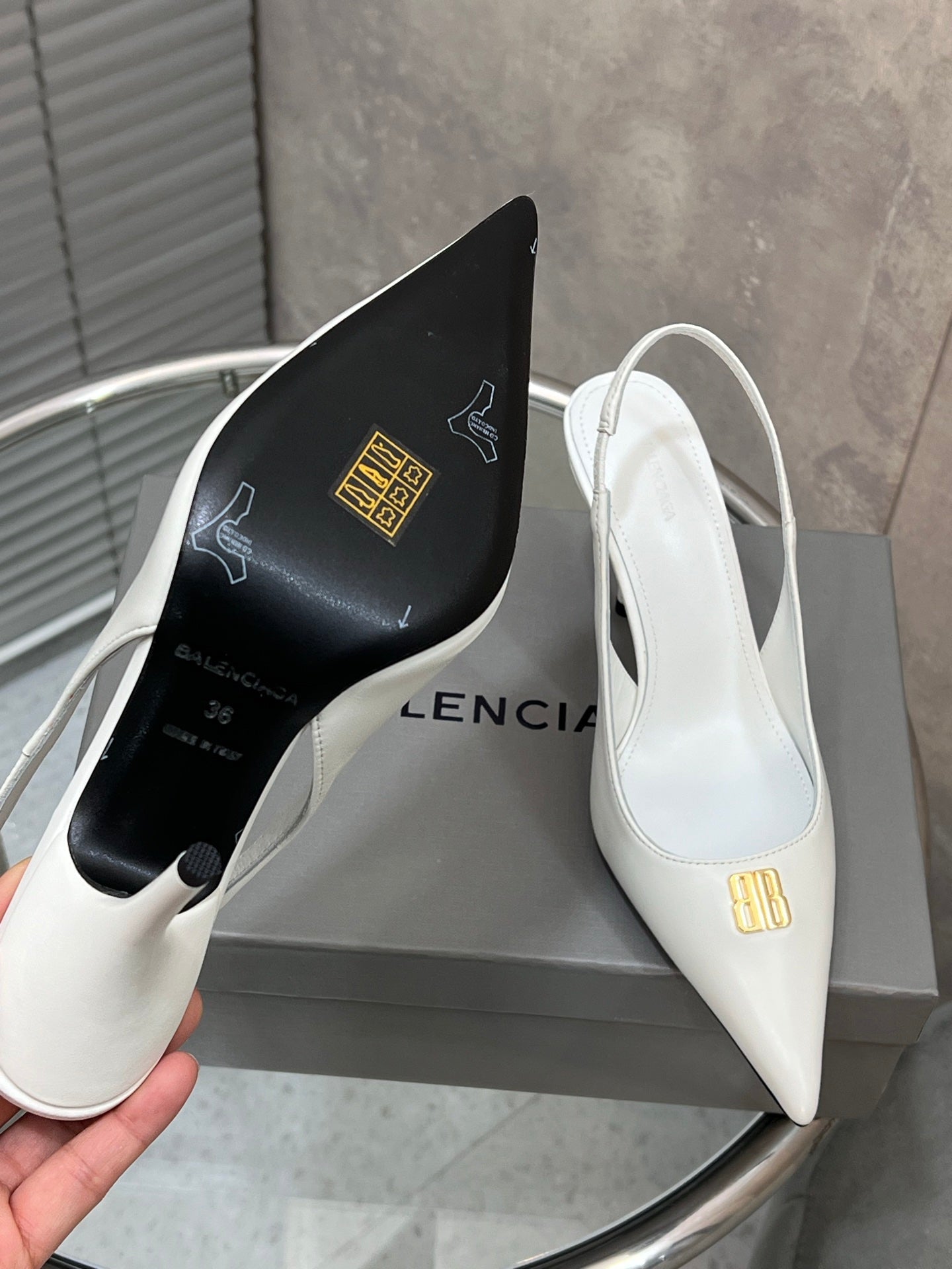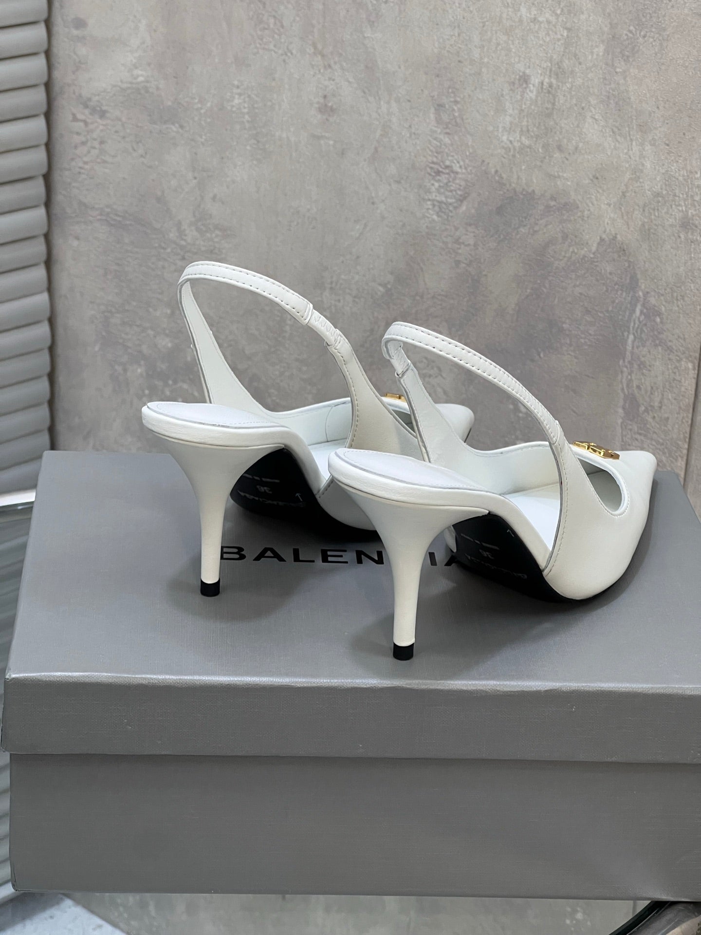 BALENCIAGA 25S HIGH-HEEL SLINGBACK 85 MM IN WHITE COW LEATHER WITH GOLD HARDWARE