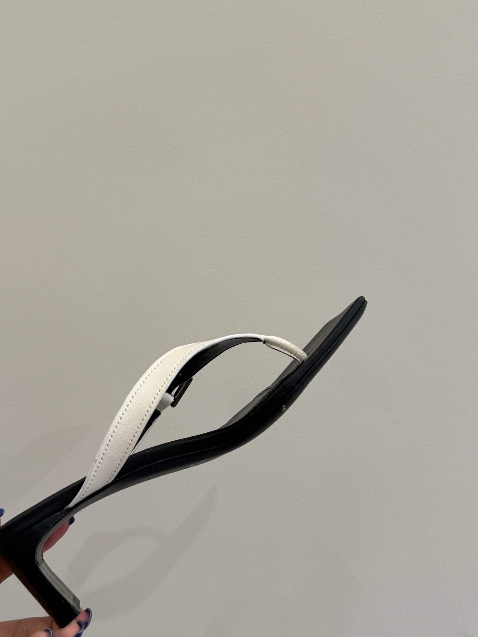 BALENCIAGA 25S HIGH-HEELED FLIP-FLOPS IN WHITE MIX BLACK CALFSKIN WITH SILVER HARDWARE