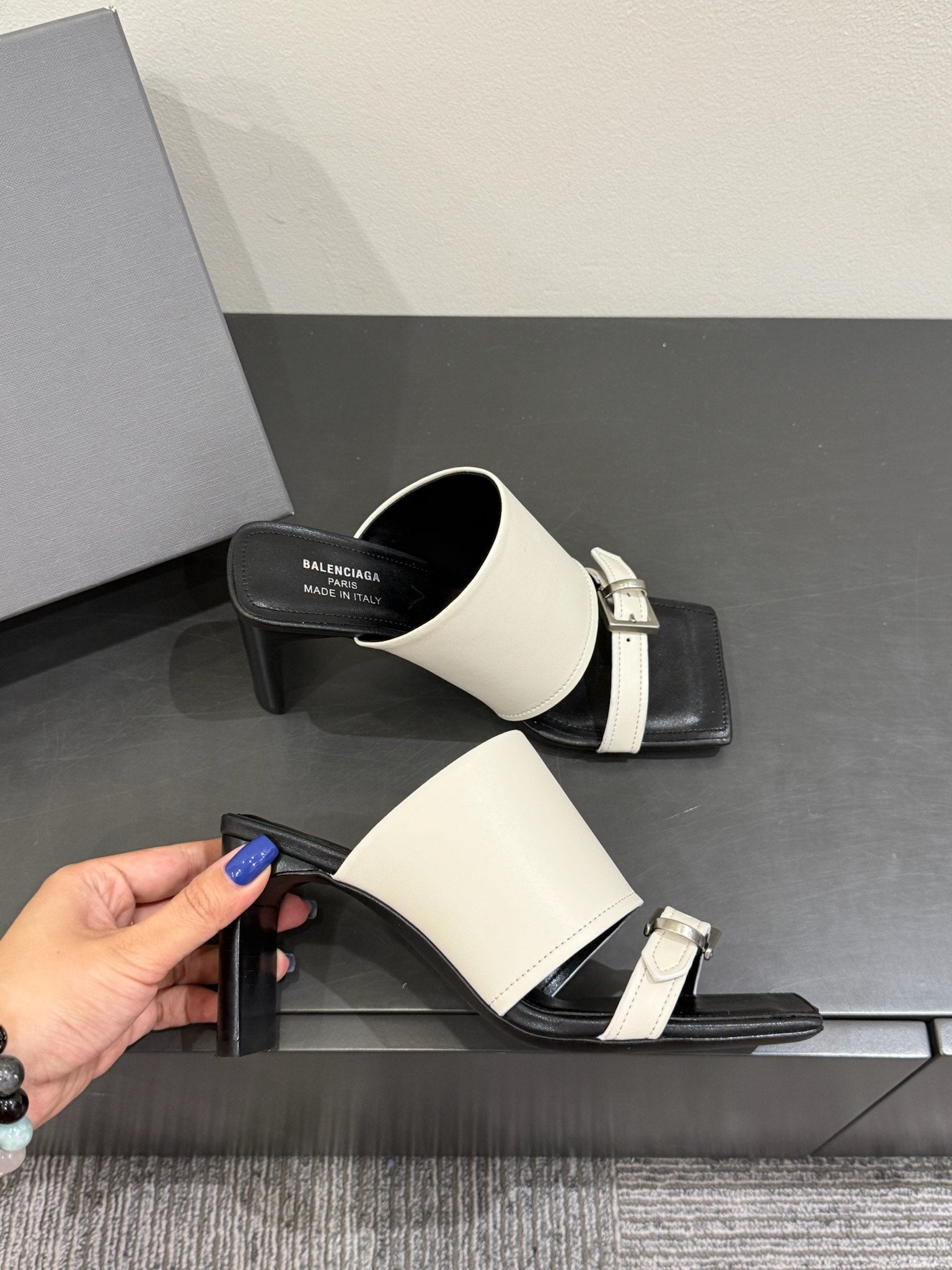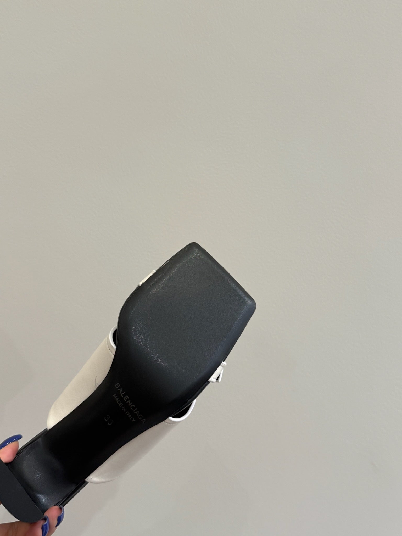 BALENCIAGA 25S HIGH-HEELED SANDALS IN WHITE CALFSKIN WITH SILVER HARDWARE